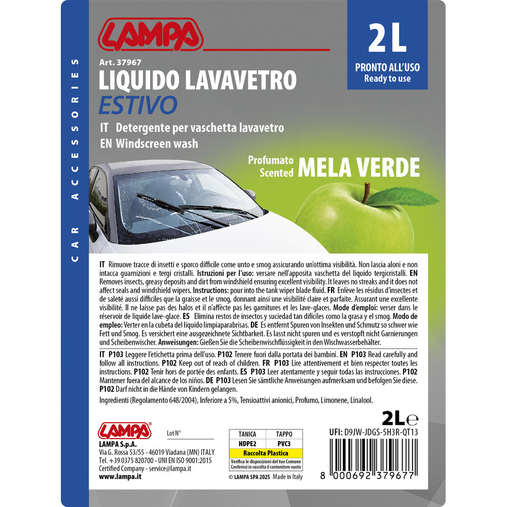 ΥΓΡΟ ΥΑΛΟΚΑΘΑΡΙΣΤΗΡΩΝ SUMMER SCREEN WASH ΜΕ ΑΡΩΜΑ ΠΡΑΣΙΝΟ ΜΗΛΟ (ΕΤΟΙΜΟ ΓΙΑ ΧΡΗΣΗ) 2000ml