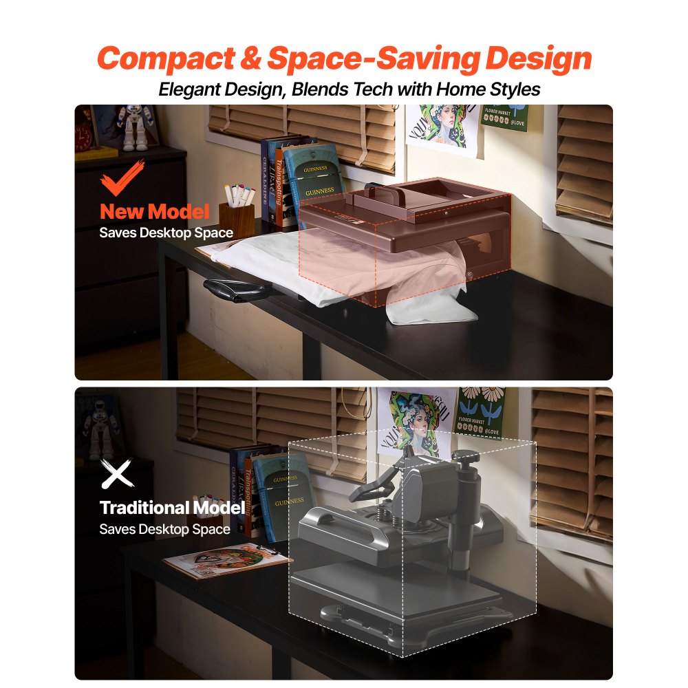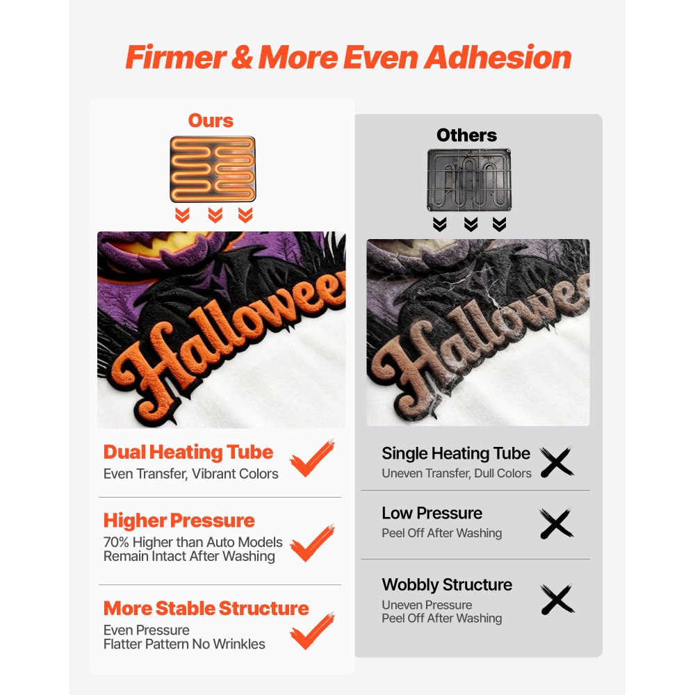 Αποκτήστε Περισσότερα, Ξοδέψτε Λιγότερα: Αυτή η υβριδική πρέσα θερμότητας 5 σε 1 χειρίζεται μπλουζάκια, φούτερ με κουκούλα, τσάντες, μαξιλάρια, καπέλα, κούπες κ.λπ. Εξοικονομήστε χώρο και κόστος με μία μόνο μηχανή. Ιδανική για τη δημιουργία δώρων για την οικογένεια ή τους πελάτες, συνδυάζοντας τη δημιουργικότητα και την πρακτικότητα. Ανώτερη Θερμική Πίεση: Η θερμική πρέσα 15 x 15 ιντσών διαθέτει 70% υψηλότερη πίεση από τα αυτόματα μοντέλα, ξεπερνώντας ακόμη και τα παραδοσιακά. Ο νέος σχεδιασμός υψηλής σταθερότητας εξασφαλίζει ομοιόμορφη κατανομή πίεσης για ανώτερα αποτελέσματα και πιο καθαρά σχέδια μεγάλης διάρκειας. Εύκολο στη λειτουργία: Ο πρόσφατα αναβαθμισμένος πίνακας ελέγχου ανεξάρτητος από χρόνο/θερμοκρασία καθιστά τη μηχανή μεταφοράς θερμότητας απλή στη χρήση. Απλώς ρυθμίστε τη θερμοκρασία, τοποθετήστε το υλικό, πιέστε προς τα κάτω και είστε έτοιμοι. Οι αρχάριοι μπορούν εύκολα να ξεκινήσουν και να δημιουργήσουν γρήγορα. Αξιόπιστη και Μακράς Διάρκειας: Ο σχεδιασμός του συρταριού πλήρους επέκτασης ελαχιστοποιεί τον κίνδυνο εγκαυμάτων κατά την τοποθέτηση υλικών. Η νέα δομή αποτρέπει την ανατροπή, καθιστώντας την πρέσα θερμότητας εξάχνωσης λιγότερο πιθανό να τραντάξει ή να παραμορφωθεί, εξασφαλίζοντας εκτεταμένη ανθεκτικότητα και ασφάλεια. Ευρεία Εφαρμογή: Η πρέσα για μπλουζάκια μας διαθέτει ένα ολοκαίνουργιο, κατοχυρωμένο με δίπλωμα ευρεσιτεχνίας σχέδιο - τέλος στα στυλ που ταιριάζουν σε όλα. Οι μαύρες και ανοιχτόχρωμες πράσινες αποχρώσεις συνδυάζονται εύκολα με διάφορα στυλ διακόσμησης και είναι συμβατή με όλα τα έργα βινυλίου HTV και θερμικής εξάχνωσης.