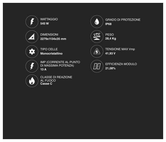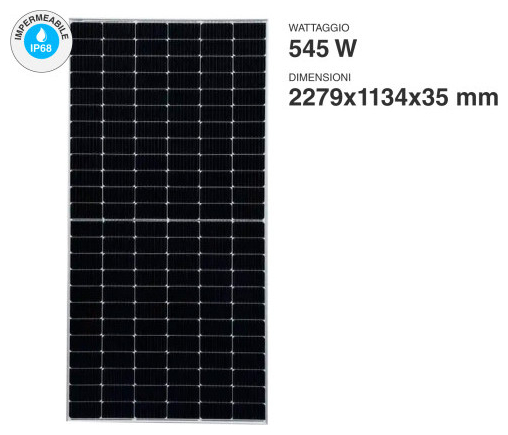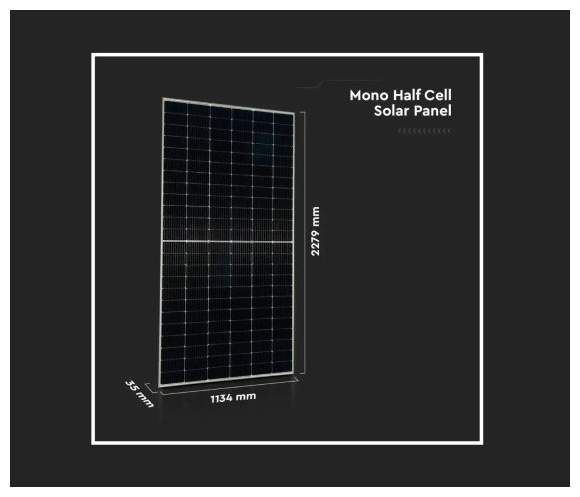 Το V-TAC SKU 11932 είναι ένα μονοκρυσταλλικό φωτοβολταϊκό στοιχείο με ισχύ 545W και διαστάσεις 2279x1134x35mm . Η ονομαστική ισχύς ανά επιφάνεια είναι 210W/m² .