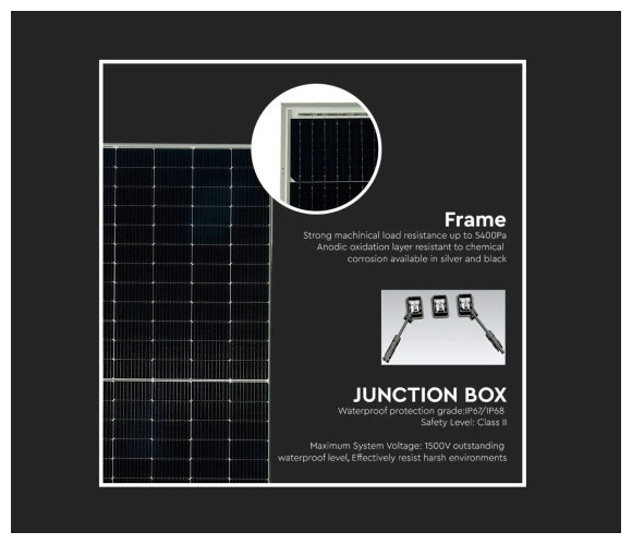 V-TAC ΦΩΤΟΒΟΛΤΑΪΚΟ ΗΛΙΑΚΟ ΠΑΝΕΛ 545W 36V ΜΟΝΟΚΡΥΣΤΑΛΛΙΚΟ 11932