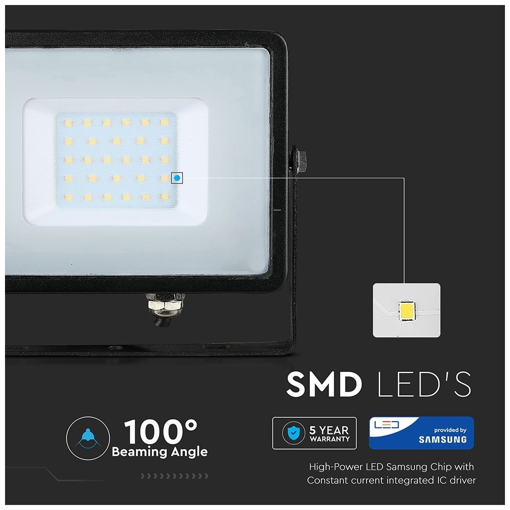 V-TAC LED Προβολέας SAMSUNG CHIP SMD 30W Σώμα Μαύρο Ψυχρό Λευκό 5 Χρονια Εγγύηση 402