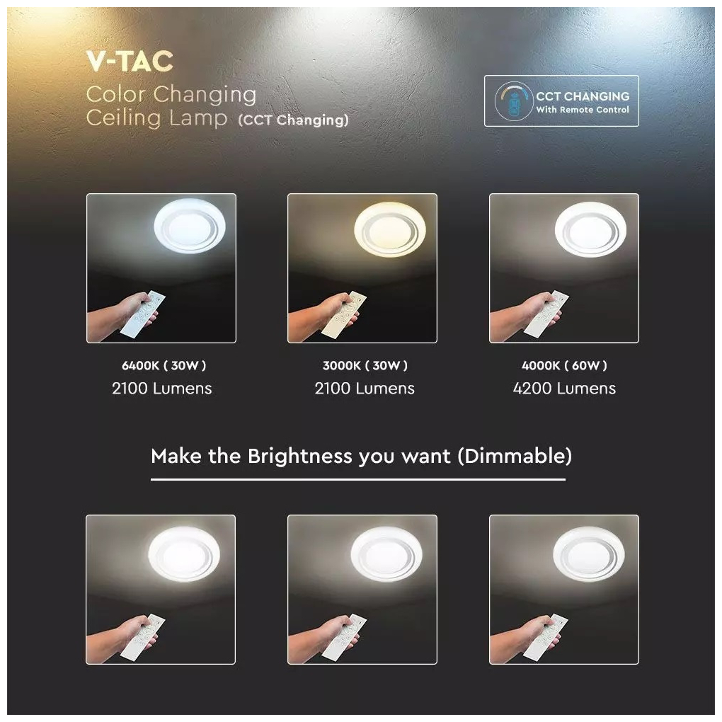 V-TAC Πλαφονιέρα LED Designer 30W/60W/30W Στρογγυλή Dimmable 3 σε 1 76011