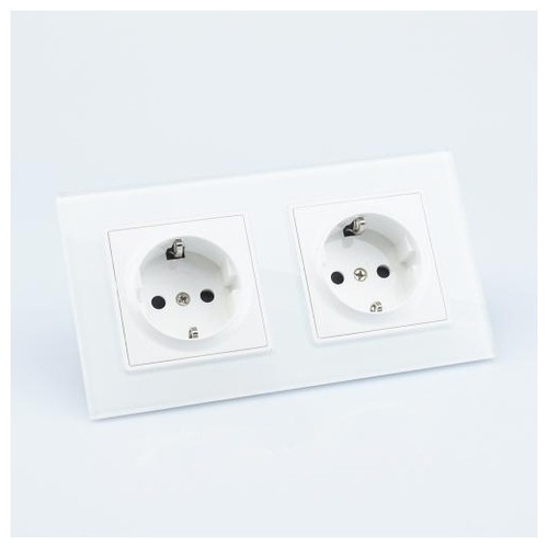 V-TAC Πρίζα Σούκο Χωνευτή Διπλή Πλαστική με Γυάλινο Φινίρισμα Λευκό σώμα