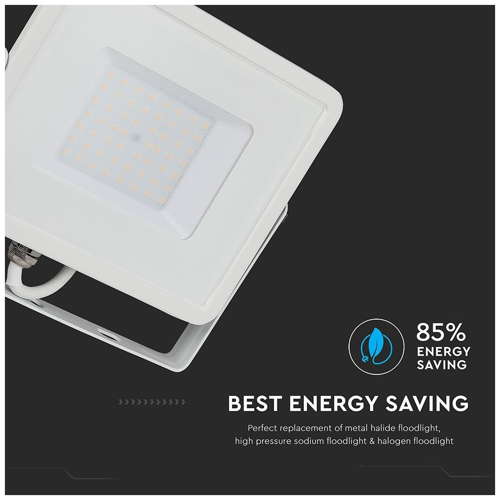 V-TAC Προβολέας LED Samsung chip 50W φυσικό λευκό 4000K λευκό σώμα 21410