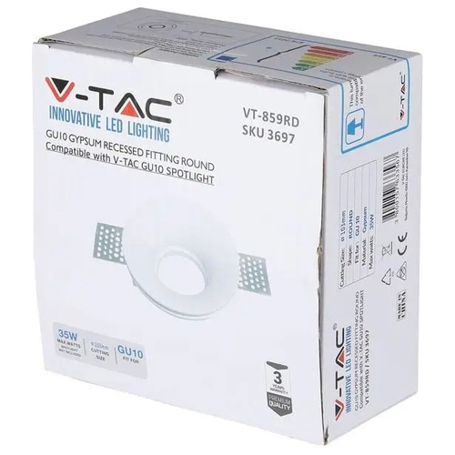V-TAC Βάση Φωτιστικό Σποτ Χωνευτό για GU10 Γύψινο Στρογγυλό 3697