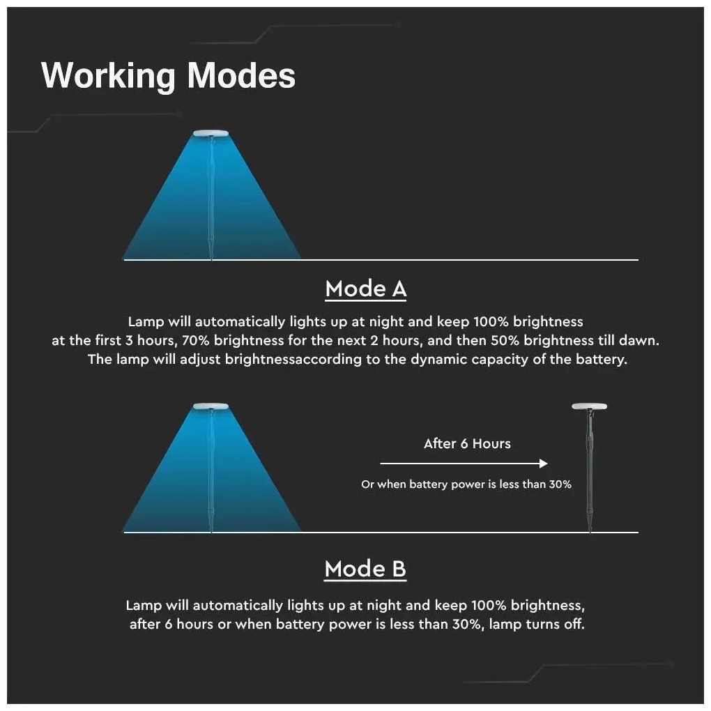 V-TAC VT-943 Σετ Καρφωτών Ηλιακών Φωτιστικών με Φωτοκύτταρο 2τμχ σε Μαύρο Χρώμα 6668