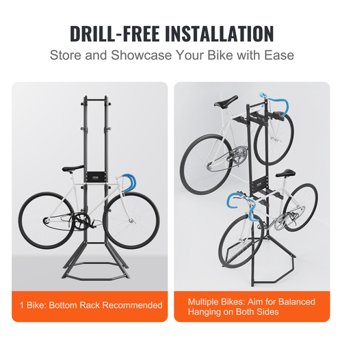 Αντοχή 260 lb: Επιτοίχια σχάρα ποδηλάτου 80,6 ιντσών, με εξαιρετική συνολική φέρουσα ικανότητα έως 260 λίβρες, με πάνω και κάτω βραχίονες ικανούς να συγκρατούν με ασφάλεια έως και 65 λίβρες ο καθένας, κατάλληλος για ποδήλατα 26 ιντσών.