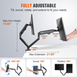 Βάση οθόνης Full Motion: Γείρετε, στρίψτε και στρίψτε τον δρόμο σας για την τέλεια θέα! Ο βραχίονας της οθόνης σας σάς επιτρέπει να περιστρέψετε την οθόνη σας κατά 360°, να την γείρετε κατά 90° προς τα επάνω, προς τα κάτω κατά 90° και ακόμη και να την περιστρέφετε κατά 180° για κοινή χρήση. Επιπλέον, με απόσταση 21,85"/560 χλστ. και ρύθμιση ύψους 19,69"/500 χλστ., η ιδανική γωνία σας είναι πάντα μια γρήγορη αλλαγή.