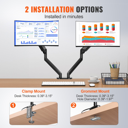 Ευέλικτη εφαρμογή για οθόνες: Γνωρίστε τον νέο καλύτερο φίλο των οθονών σας – τη βάση μας για οθόνη διπλού βραχίονα! Προσαρμοσμένο για οθόνες 13"-35"/330-889 mm, χωράει άνετα έως συνολικά 52,9 λίβρες/24 κιλά (κάθε βραχίονας χωράει 26,4 λίβρες/12 κιλά). Είτε έχετε μια τυπική οθόνη είτε μια εξαιρετικά ευρεία οθόνη, αυτή η βάση έχει την πλάτη σας.