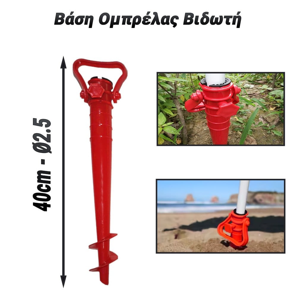 Εξασφαλίστε την απόλυτη σταθερότητα για την ομπρέλα σας με τη βιδωτή βάση ομπρέλας. Ιδανική για χρήση στην παραλία, στον κήπο ή σε οποιονδήποτε εξωτερικό χώρο, αυτή η βάση προσφέρει ασφαλή και εύκολη τοποθέτηση για την ομπρέλα σας! Χαρακτηριστικά: Υλικό: Κατασκευασμένη από ανθεκτικό πλαστικό υψηλής ποιότητας, η βάση αυτή εξασφαλίζει μακροχρόνια χρήση και αντοχή στις καιρικές συνθήκες. Σύστημα Βιδώματος: Η βάση διαθέτει ισχυρό βιδωτό μηχανισμό που επιτρέπει την εύκολη τοποθέτηση στο έδαφος, προσφέροντας εξαιρετική σταθερότητα. Εύκολη Χρήση: Το εργονομικό χερούλι καθιστά την τοποθέτηση της βάσης απλή και γρήγορη, χωρίς την ανάγκη για επιπλέον εργαλεία. Προσαρμογή: Κατάλληλη για ομπρέλες με διάφορες διαμέτρους σωλήνα, προσφέροντας ευελιξία και ευκολία στη χρήση. Φορητότητα: Ελαφριά και εύκολη στη μεταφορά, μπορείτε να την πάρετε μαζί σας όπου κι αν πάτε, από την παραλία μέχρι τον κήπο σας. Ιδανικό για: Παραλίες: Σταθεροποιήστε την ομπρέλα σας ακόμα και στην άμμο, απολαμβάνοντας τη σκιά χωρίς τον φόβο ανατροπής από τον άνεμο. Κήπους: Ιδανική για χρήση στον κήπο ή στην αυλή σας, παρέχοντας ασφαλή στήριξη για την ομπρέλα σας κατά τις καλοκαιρινές σας δραστηριότητες. Πικνίκ και Εκδρομές: Ελαφριά και εύκολη στη μεταφορά, η βιδωτή βάση είναι τέλεια για πικνίκ, κάμπινγκ και άλλες εξωτερικές δραστηριότητες. Η βιδωτή βάση ομπρέλας είναι η απόλυτη λύση για να κρατήσετε την ομπρέλα σας σταθερή και ασφαλή σε κάθε εξωτερικό χώρο. Προσφέρει αντοχή, ευκολία στη χρήση και ευελιξία, καθιστώντας την ιδανική επιλογή για κάθε περίσταση. Αποκτήστε τη σήμερα και απολαύστε την προστασία και τη σταθερότητα που προσφέρει!