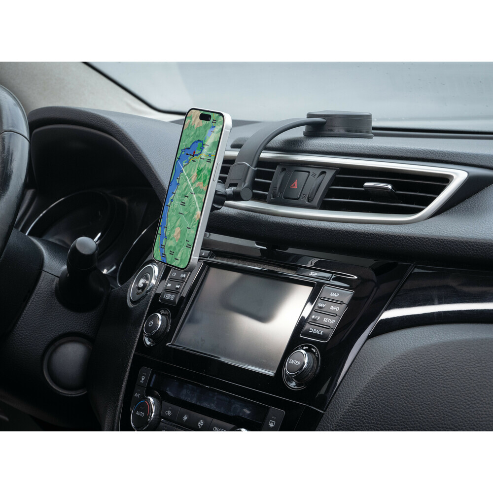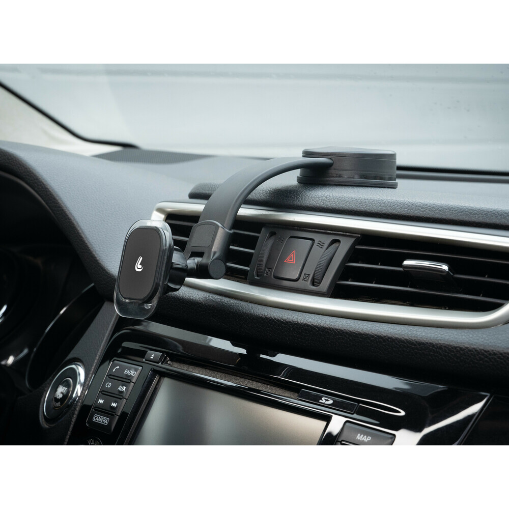 Σχεδιασμένη για διακριτική τοποθέτηση χωρίς να εμποδίζει την ορατότητα κατά την οδήγηση. Η αυτοκόλλητη βεντούζα εξασφαλίζει άριστη πρόσφυση σε ταμπλό και παρμπρίζ. Εξοπλισμένη με 4 υπερ-ισχυρούς μαγνήτες, προσφέρει σταθερή συγκράτηση του τηλεφώνου σας. Ο εύκαμπτος λαιμός 13 cm προσαρμόζεται εύκολα στο σχήμα του ταμπλό ή του παρμπρίζ, ενώ η ρυθμιζόμενη βάση στήριξης επιτρέπει να βρείτε την καλύτερη γωνία θέασης για το smartphone σας. Η βάση βεντούζας είναι ρυθμιζόμενη χωρίς να χρειάζεται αφαίρεση από την επιφάνεια εφαρμογής. Περιλαμβάνει 2 μεταλλικές πλάκες.