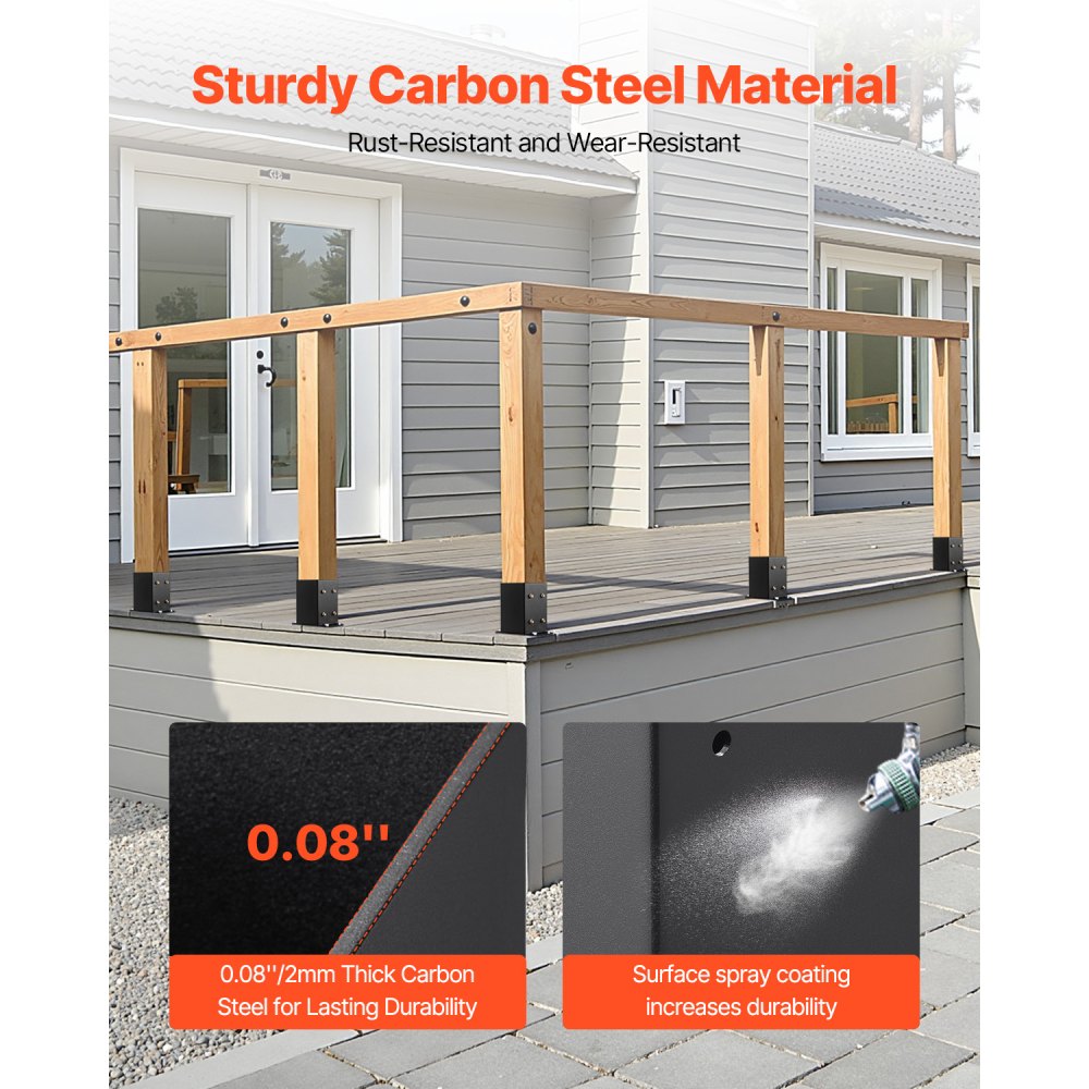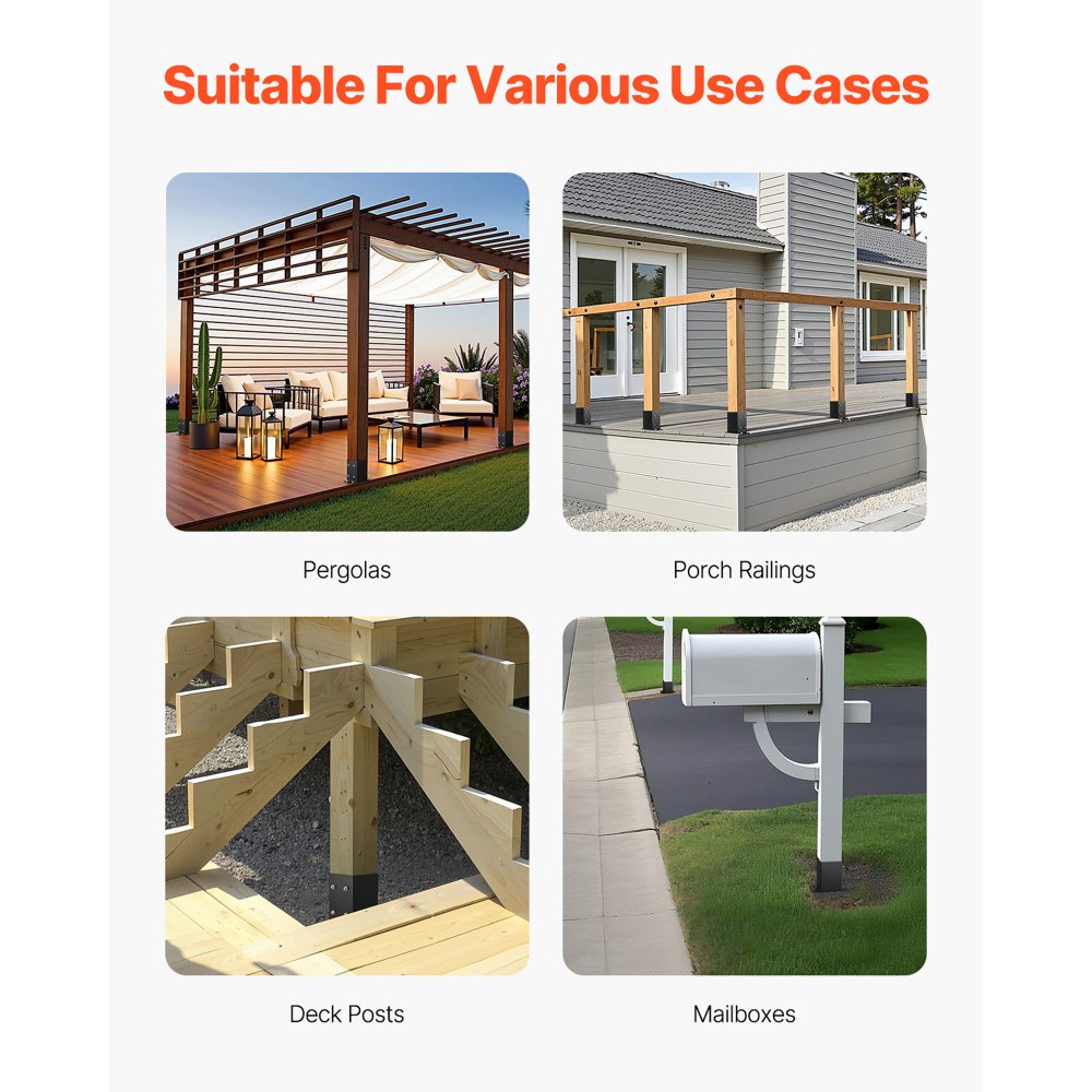 Σταθερή Στήριξη: Το εσωτερικό μέγεθος κάθε βάσης στύλου είναι 3,6 x 3,6 ίντσες, με συνολικά 10 τεμάχια. Συνιστάται για χρήση με στύλους 3,5 x 3,5 ιντσών. Ο πλήρως κλειστός σχεδιασμός παρέχει ασφαλή, αποτελεσματική στήριξη και διασφαλίζει ότι δεν θα τρέμει κατά τη χρήση. Ανθεκτικό και στιβαρό: Αυτή η βάση στήριξης είναι κατασκευασμένη από ανθρακούχο χάλυβα με πάχος τοιχώματος 0,08 ίντσες, εξασφαλίζοντας μακροχρόνια ανθεκτικότητα χωρίς παραμόρφωση. Η επιφάνεια είναι επικαλυμμένη με ηλεκτροστατική βαφή για αντοχή στη διάβρωση και τη σκουριά, παρέχοντας μεγάλη διάρκεια ζωής. Η εγκατάσταση είναι παιχνιδάκι: Μπορείτε να το συναρμολογήσετε γρήγορα ακολουθώντας το εγχειρίδιο χρήσης. Απλώς ανοίξτε τρύπες με ένα ηλεκτρικό τρυπάνι, ευθυγραμμίστε τις ενσωματωμένες τρύπες των βιδών και στερεώστε τις με βίδες, εξοικονομώντας χρόνο και προσπάθεια. Πλήρη αξεσουάρ: Αυτό το σετ βάσης αγκύρωσης περιλαμβάνει: Βίδες χελιδονοουράς M5x25 (90 τεμ.), Λεπτό κλειδί M8 ανοιχτού άκρου 14 (1 τεμ.), Οδοντωτά χιτώνια M8 (44 τεμ.) και βίδες αυτοκοχλιούμενου σπειρώματος M8x60 (44 τεμ.). Εύκολη εγκατάσταση και βολική χρήση. Ευρεία εφαρμογή: Οι βίδες διπλής χρήσης είναι κατάλληλες για εγκαταστάσεις δαπέδων από σκυρόδεμα και ξύλο. Αυτή η βάση στύλου μπορεί να χρησιμοποιηθεί ευρέως σε πέργκολες, κιγκλιδώματα βεράντας, στηρίγματα κολώνων και άλλα, παρέχοντας ασφαλή στήριξη.