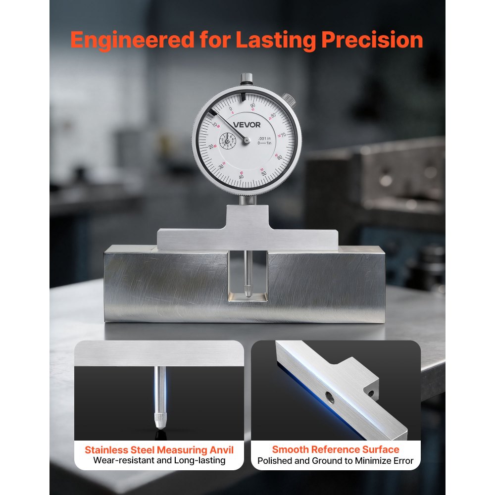 Σετ μικρομέτρων υψηλής ακρίβειας: Αυτό το μικρόμετρο βάθους παρέχει ακριβείς, αξιόπιστες γραμμικές μετρήσεις με εύρος 1–2 ίντσες, ακρίβεια ±0,001 και ανάλυση 0,001. Ιδανικό για τη μέτρηση εξαρτημάτων κινητήρα ή εξαρτημάτων ακριβείας. Ευκρινής και εύκολη λειτουργία: Αυτό το μικρόμετρο διαθέτει ευκρινείς ενδείξεις για εύκολη ανάγνωση. Με υψηλή αντοχή στις γρατσουνιές και τη διάβρωση, αντέχει στη συχνή χρήση στο εργαστήριο, παρέχοντας παράλληλα ακριβείς γραμμικές μετρήσεις απόστασης για μακροχρόνια χρήση. Ακριβής μέτρηση: Αυτός ο μετρητής βάθους διαθέτει άκμονες από ανοξείδωτο χάλυβα και λείες επιφάνειες αναφοράς για την ασφαλή συγκράτηση των τεμαχίων εργασίας και την αποφυγή σφαλμάτων μέτρησης. Το συμπαγές μεταλλικό πλαίσιο προσφέρει εξαιρετική αντοχή στη φθορά και μακροπρόθεσμη σταθερότητα για χρήση στο εργαστήριο. Ευέλικτες Εργασίες Μέτρησης: Αυτοί οι μετρητές βάθους περιλαμβάνουν τέσσερις άκμονες για να ταιριάζουν σε διαφορετικά τεμάχια εργασίας. Έξι ράβδοι βαθμονόμησης μπορούν να συνδυαστούν για εύρος 0–22 ίντσες, ιδανικό για τη μέτρηση μεταλλικών φύλλων, αυλακώσεων και άλλων βάθους, καλύπτοντας τις επαγγελματικές ανάγκες μεταλλουργίας. Πλήρες σετ: Αυτό το εργαλείο μέτρησης βάθους συνοδεύεται από μια σκληρή θήκη που περιέχει ένα μικρόμετρο βάθους, έξι ράβδους, τέσσερα αμόνια και οδηγίες. Διατηρεί τα εργαλεία οργανωμένα και φορητά, έτοιμα για άμεση χρήση στο πεδίο ή στο εργαστήριο χωρίς κίνδυνο απώλειας.