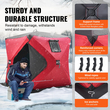 Σχεδιασμός αναδυόμενων παραθύρων: Ο βολικός σχεδιασμός αναδυόμενων παραθύρων επιτρέπει την εύκολη εγκατάσταση και αφαίρεση της παράγκας από πάγο για χειμερινό ψάρεμα. Με μερικά απλά βήματα, μπορείτε να έχετε το καταφύγιό σας έτοιμο για χρήση ή να το συσκευάσετε γρήγορα.