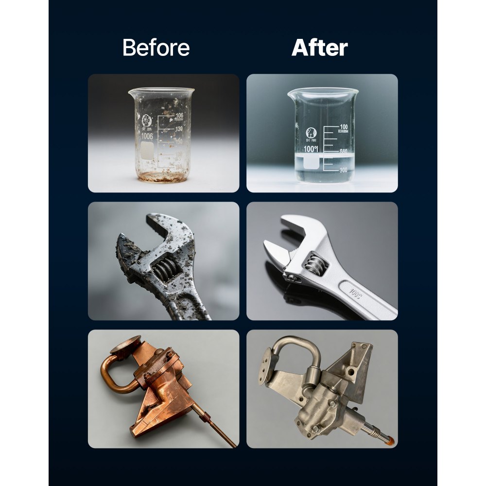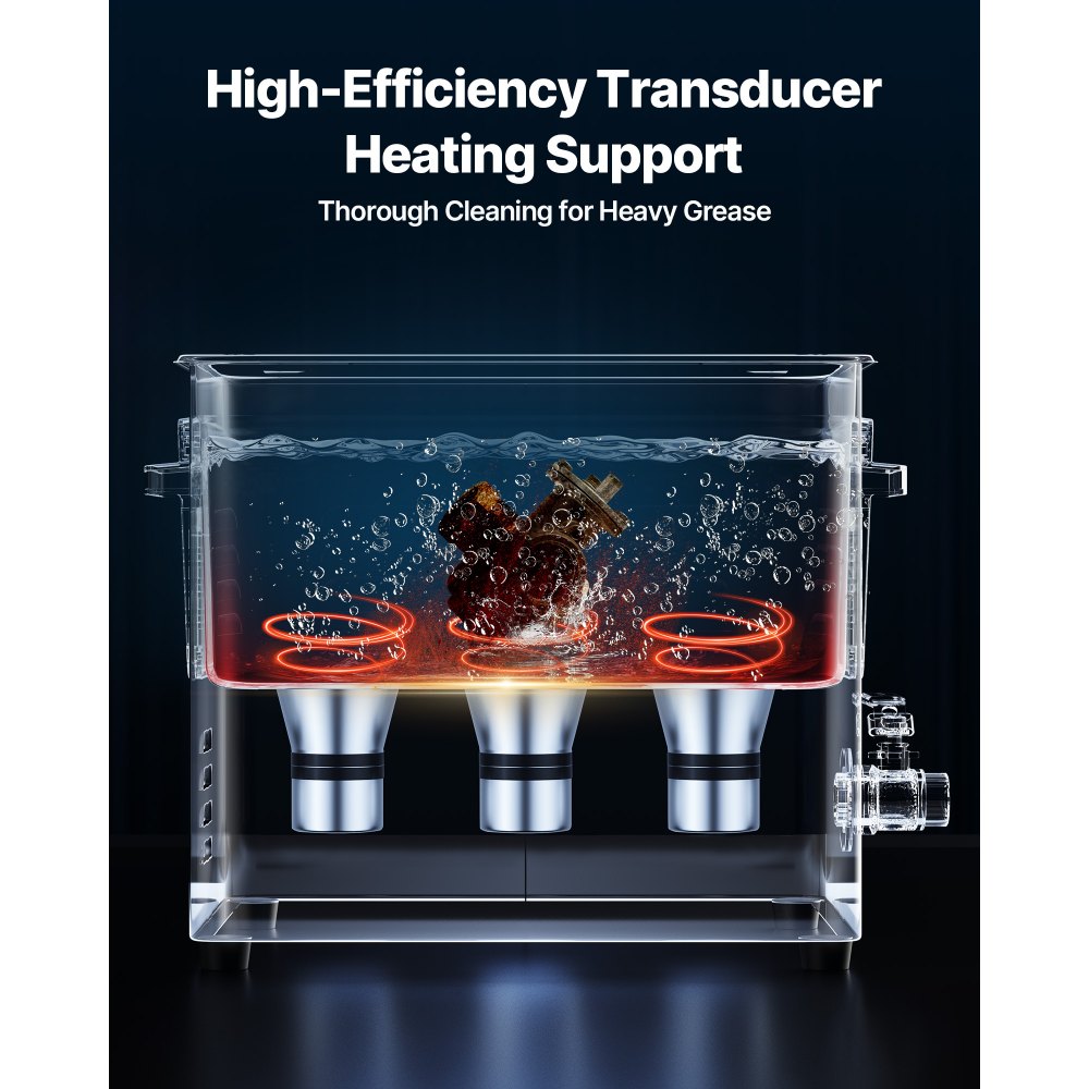 Ισχυρή απόδοση καθαρισμού: Τα υπερηχητικά κύματα 40kHz παράγουν 40.000 μικροφυσαλίδες ανά δευτερόλεπτο, «εκρήγνυνται» σαν χιλιάδες μικροσκοπικές βούρτσες. Αφαιρούν λίπος, βρωμιά και υπολείμματα από τα κανάλια του καρμπυρατέρ, τις άκρες των αερογράφου, το λουράκι του ρολογιού, μικρά εξαρτήματα και άλλα. Προηγμένη Τεχνολογία Αισθητήρων: Εξοπλισμένο με αισθητήρες υψηλής απόδοσης, το υπερηχητικό καθαριστικό μας προσφέρει εκρηκτική καθαριστική ισχύ που διασπά τα επίμονα λίπη και τη βρωμιά. Παρέχει βαθύ καθαρισμό 360° για όργανα ακριβείας, αφαιρώντας βρωμιά και λάδια. Κατάλληλο για πολλαπλά υλικά: Ιδανικό για κοσμήματα, ρολόγια/ηλεκτρονικά εξαρτήματα ή βιομηχανικά εξαρτήματα με έντονους λεκέδες λαδιού. Οι ρυθμιζόμενες θερμοκρασίες καθαρισμού από 0–80°C επιταχύνουν τη διάλυση της βρωμιάς, παρέχοντας πιο αποτελεσματικό και στοχευμένο καθαρισμό. Σχεδιασμός υψηλής ποιότητας: Το sonic cleaner διαθέτει καλάθι και εσωτερική δεξαμενή από ανοξείδωτο ατσάλι ανθεκτικό στη διάβρωση, ενώ το καλάθι αποτρέπει τις γρατσουνιές. Η αναβαθμισμένη λαβή διευκολύνει τη μεταφορά της γεμάτης δεξαμενής και η ψηφιακή οθόνη εξασφαλίζει απλή και ακριβή λειτουργία. Ευρύ φάσμα εφαρμογών: Ιδανικό για μέταλλα και όργανα ακριβείας: καρμπυρατέρ, μηχανικά μέρη, αερογράφοι, λουράκια ρολογιών, εξαρτήματα, εξαρτήματα εργαστηρίου και άλλα. Οι προσαρμόσιμες ρυθμίσεις θερμοκρασίας και χρονοδιακόπτη καλύπτουν περισσότερα υλικά και σενάρια.