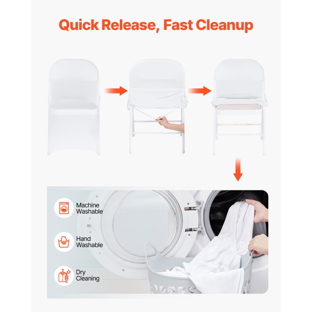 Υλικό υψηλής ποιότητας: Κατασκευασμένα από 95% πολυεστέρα και 5% σπάντεξ, τα καλύμματα καρέκλας μας διαθέτουν εκλεπτυσμένες ραφές, καθιστώντας τα ελαστικά, ανθεκτικά στις ζάρες, απαλά και εύκαμπτα. Να είστε σίγουροι ότι θα τα χρησιμοποιήσετε πολλές φορές. Εξαιρετική προστασία καρέκλας: Αυτά τα καλύμματα καρέκλας έχουν σχεδιαστεί για να προστατεύουν τις καρέκλες από γρατζουνιές ή λεκέδες. Επιπλέον, είναι κομψά σε διάφορα χρώματα για να διαλέξετε και θα προσφέρουν χαρούμενη και βασιλική ατμόσφαιρα. Ελαστικό ύφασμα: 4 ελαστικές ενισχυμένες τσέπες για τα πόδια στο κάτω μέρος αυξάνουν τη διάρκεια ζωής του καλύμματος, αποτρέποντας τα σκισίματα, ιδανικές για επαναλαμβανόμενη χρήση, διατηρώντας τες σφιχτά στη θέση τους. Εύκολη χρήση και πλύσιμο: Απλώς τεντώστε τα πάνω από την καρέκλα, εξοικονομώντας χρόνο και εργασία. Μπορούν να πλυθούν με ήπιο απορρυπαντικό στο χέρι, στο πλυντήριο, καθώς και σε στεγνό καθάρισμα. Προσαρμόσιμες καρέκλες και περιστάσεις: Αυτά τα καλύμματα καρεκλών είναι ιδανικά για πτυσσόμενες καρέκλες. Μπορείτε να τα χρησιμοποιήσετε για να διακοσμήσετε προσωπικές και επαγγελματικές εκδηλώσεις, όπως πάρτι γενεθλίων, γάμους, επαγγελματικές συναντήσεις, δεξιώσεις, εορτασμούς κ.λπ.