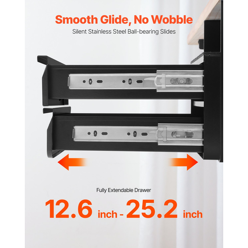 Αποτελεσματική οργάνωση: Πείτε αντίο στους γεμάτες επιτραπέζιους υπολογιστές! Αποθηκεύστε τα αντικείμενα ή τα εργαλεία που χρησιμοποιείτε πιο συχνά σε αυτό το συρτάρι κάτω από το τραπέζι για να διατηρήσετε το γραφείο σας τακτοποιημένο και να αυξήσετε την παραγωγικότητα. Με μια επένδυση συρταριού EVA, τα αντικείμενά σας μαλακώνουν, μειώνοντας τον κίνδυνο γρατσουνιών. Η απλή συναρμολόγηση σημαίνει ότι μπορείτε να ακολουθήσετε το εγχειρίδιο οδηγιών μας και να το κάνετε μόνοι σας. (Για ευκολότερη εγκατάσταση, συνιστάται να αναστρέψετε την επιφάνεια του γραφείου για να ασφαλίσετε το συρτάρι, εξοικονομώντας σας προσπάθεια.)