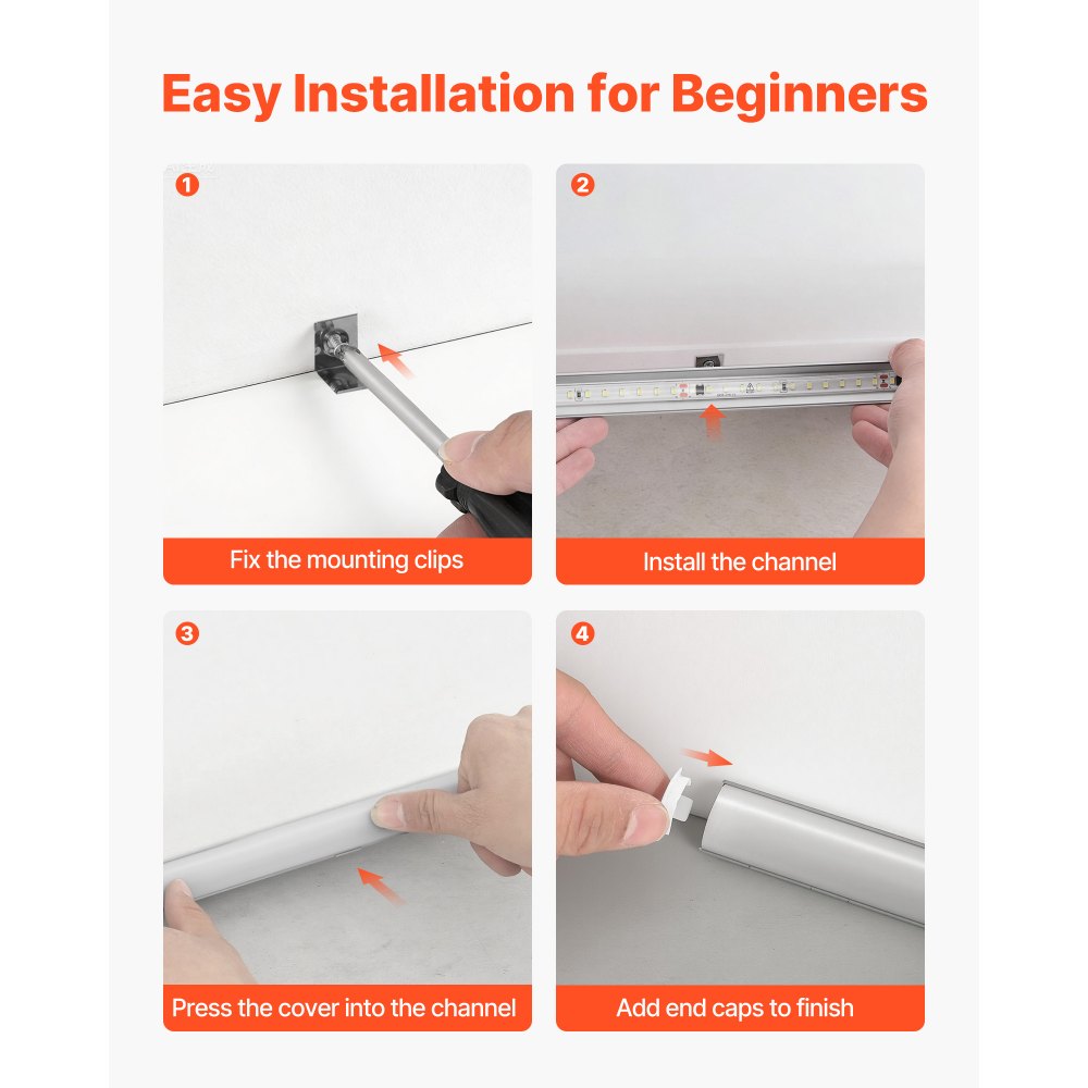 Φωτεινός, Ομοιόμορφος Φωτισμός: Η ανθεκτική στην οξείδωση επιφάνεια διατηρεί την φωτεινότητα ορατή, ενώ παράλληλα απαλύνει το φως για ομαλό, φιλικό προς τα μάτια φωτισμό. Το κανάλι αλουμινίου LED με γαλακτώδες κάλυμμα φαίνεται κομψό και κομψό, βελτιώνοντας τη συνολική ατμόσφαιρα του σπιτιού σας. Ενισχυμένη προστασία: Αυτό το κανάλι διάχυσης ταινιών LED διαθέτει ανοδιωμένο αλουμίνιο για εξαιρετική απαγωγή θερμότητας και παράταση της διάρκειας ζωής των LED. Το κάλυμμα προστατεύει τις ταινίες από τη σκόνη, τις τρίχες και την υγρασία, αποτρέποντας το κιτρίνισμα, το χαλάρωμα και το ξεφλούδισμα με την πάροδο του χρόνου. Εύκολη εγκατάσταση: Στερεώστε πρώτα τα κλιπ στερέωσης, τοποθετήστε το κανάλι της ταινίας LED, κολλήστε την ταινία LED, πιέστε το κάλυμμα και προσθέστε τα καλύμματα των άκρων. Με τα πλήρη αξεσουάρ που περιλαμβάνονται, ακόμη και οι αρχάριοι μπορούν να ολοκληρώσουν την εγκατάσταση γρήγορα και με σιγουριά. Ευρεία εφαρμογή: Αυτή η ταινία LED με φως είναι ιδανική για βιβλιοθήκες, κάτω από ντουλάπια, ντουλάπες, προθήκες και γωνίες σαλονιού ή υπνοδωματίου. Δημιουργεί επίσης εορταστικό φωτισμό για γιορτές όπως το Πάσχα και τα Χριστούγεννα με μια πινελιά κομψότητας. Πολλαπλές διαθέσιμες επιλογές: Λύση γραμμικού φωτισμού μίας χρήσης με διάφορα στυλ καναλιών LED: Σχήμα U για κρυφό φωτισμό, σχήμα U για μεγάλες διαστάσεις για απαλή λάμψη χωρίς αντανακλάσεις, σχήμα V για εστιασμένες πινελιές και εσοχή διπλής όψης για καθαρά, άψογα σχέδια.