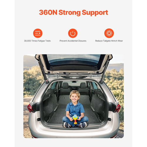 Ισχυρή υποστήριξη: Με ισχυρή δύναμη στήριξης 360N, τα γόνατα στήριξης τροφοδοσίας ανύψωσης της πίσω πόρτας του χώρου αποσκευών μας ανοίγουν και κλείνουν ομαλά και με ασφάλεια την πόρτα του χώρου αποσκευών σας μέσα σε 5-8 δευτερόλεπτα, μειώνοντας τη φθορά στους μεντεσέδες και το γόνατο της πίσω πόρτας έχει περάσει 30.000 δοκιμές κόπωσης για βελτιωμένη ασφάλεια.