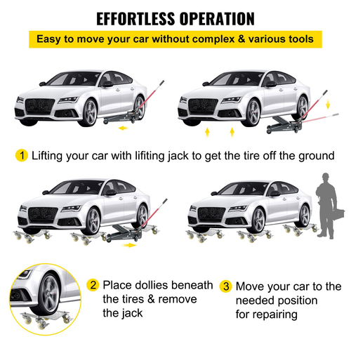 Ευρεία εφαρμογή: Αυτά τα κουκλάκια οχημάτων είναι ιδανικά για καταστήματα, γκαράζ και εκθεσιακούς χώρους, επιτρέποντάς σας να μετακινείτε αυτοκίνητα, φορτηγά, ρυμουλκούμενα, βάρκες, τρακτέρ, μοτοσικλέτες, αεροπλάνα, έπιπλα, εξοπλισμός κ.λπ. . Διαθέτει στιβαρή δομή από χάλυβα και συνολική συμβατότητα φόρτωσης 2200 λίβρες για να ικανοποιήσει τη ζήτηση του επαγγελματικού και του οικιακού σας οχήματος.