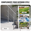 Ευέλικτη χρήση: Αυτό το κιγκλίδωμα σκάλας εξωτερικού χώρου μπορεί να τοποθετηθεί σε σκυρόδεμα, ξύλινα δάπεδα, πλακάκια, μάρμαρο και άλλες συμπαγείς επιφάνειες. Ο μοναδικός σχεδιασμός του συμπληρώνει διάφορους τύπους σκαλοπατιών, διασφαλίζοντας τόσο λειτουργικότητα όσο και στυλ.