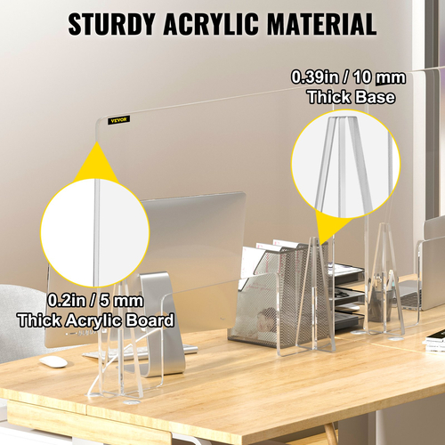 【PREMIUM ΠΟΙΟΤΗΤΑ】 - Κατασκευασμένο από πυκνό ακρυλικό υλικό, αυτή η ασπίδα γραφείου διαθέτει υψηλή αντοχή στην κρούση και καθαρή ορατότητα. Οι στρογγυλεμένες άκρες του είναι σχεδιασμένες για ασφαλή χρήση και η επιφάνεια μπορεί εύκολα να καθαριστεί με οποιοδήποτε απολυμαντικό σπρέι, καθαριστικό ή σκούπισμα.