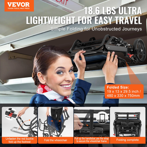 18,6 λίβρες Εξαιρετικά ελαφρύ: Με βάρος μόνο 18,6 λίβρες, αυτό το αναπηρικό καροτσάκι προσφέρει εύκολο και άνετο ταξίδι. Διαθέτοντας αναδιπλούμενο σχέδιο με ένα άγγιγμα για απλή και γρήγορη λειτουργία, σας επιτρέπει να απολαμβάνετε ταξίδια χωρίς εμπόδια οποιαδήποτε στιγμή, οπουδήποτε. Όταν διπλώνεται, το συμπαγές του μέγεθος χωράει εύκολα στο πορτμπαγκάζ αυτοκινήτων, προσθέτοντας άνεση και άνεση στα ταξίδια σας.