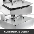 Χωρητικότητα: 6L + 6L (0,2 + 0,2 κυβικά πόδια)Μέγιστη χωρητικότητα λαδιού: 5,5L + 5,5L (0,19 + 0,19 cu. ft.)Εύρος θερμοκρασίας: 50~200 °CΥλικό: Ανοξείδωτο ατσάλιΜέγιστη ισχύς: 5000WΣταθερή ισχύς: 3400WΔιαστάσεις δεξαμενής: 240 x 300 x 153 mmΣυνολικές διαστάσεις: 560 x 430 x 310 mm (22" x 17" x 12,2")εγχειρίδιο: http://qiniu.vevor.net/20200319114757360.pdf