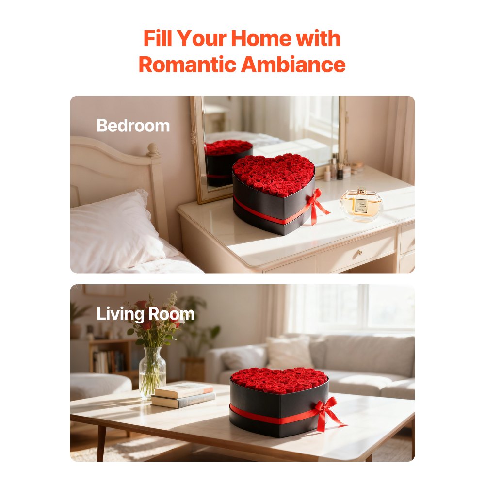 Τριαντάφυλλα Forever Flowers: Φτιαγμένα από 50 αληθινά διατηρημένα τριαντάφυλλα, κάθε τριαντάφυλλο Forever είναι προσεκτικά τοποθετημένο σε ένα κουτί σε σχήμα καρδιάς για μια ζωντανή, κομψή και ρομαντική εμφάνιση. Αιώνια Λουλούδια με Διαρκή Ομορφιά: Η προηγμένη συντήρηση διατηρεί τα διατηρημένα τριαντάφυλλα φρέσκα και πολύχρωμα για έως και 3 χρόνια, υποστηριζόμενη από έναν σταθερό σχεδιασμό που αποφεύγει την παραμόρφωση και διατηρεί την κομψότητα μακράς διαρκείας. Διατηρημένα λουλούδια που δεν χρειάζονται φροντίδα: Αυτά τα αιώνια τριαντάφυλλα δεν χρειάζονται πότισμα ή ηλιακό φως. Με ένα ελαφρύ άρωμα τριαντάφυλλου, απλώς τοποθετήστε τα οπουδήποτε για να απολαύσετε την αιώνια κομψότητά τους χωρίς την ταλαιπωρία της συντήρησης. Ρομαντική επιλογή Forever Rose: Κομψά λουλούδια σε κονσέρβα με κλασικό κουτί σε σχήμα καρδιάς και κορδέλα, αποτελούν ένα διαχρονικό δώρο για την Ημέρα του Αγίου Βαλεντίνου, τα γενέθλια ή τα Χριστούγεννα, εκφράζοντας αγάπη που δεν τελειώνει ποτέ. Ευέλικτη Διακόσμηση με Διατηρημένα Τριαντάφυλλα: Με φυσική υφή και ισορροπημένο σχεδιασμό, αυτά τα αιώνια λουλούδια συνδυάζονται εύκολα με σαλόνια, υπνοδωμάτια, γάμους ή εκδηλώσεις, εναρμονίζονται εύκολα με τη διακόσμηση του σπιτιού, ενισχύοντας την ατμόσφαιρα του χώρου και των εκδηλώσεών σας.