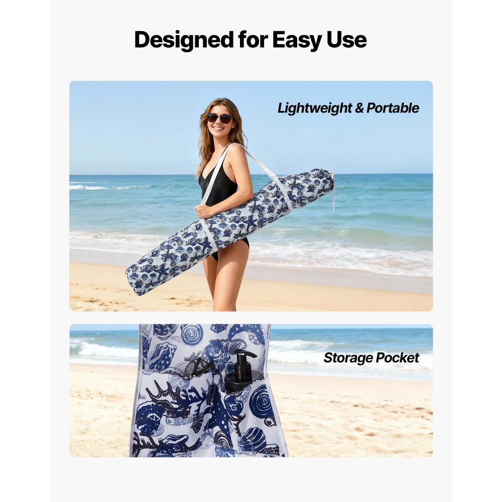 Καμπάνα παραλίας 6 x 6 ποδιών: Αυτή η ευρύχωρη καμπάνα παραλίας με πλαϊνή κουρτίνα φιλοξενεί άνετα δύο άτομα, καρέκλες και εξοπλισμό. Σχεδιασμένη με τσέπες αποθήκευσης, διατηρεί τα τηλέφωνα, τα γυαλιά ηλίου και το αντηλιακό σε κοντινή απόσταση. Αντηλιακή προστασία UPF 50+: Κατασκευασμένη από ύφασμα ανθεκτικό στον ήλιο 140 g/m², η σκηνή παραλίας Cabana προσφέρει σκιά και μειώνει τον κίνδυνο ηλιακού εγκαύματος. Η πλαϊνή κουρτίνα διαθέτει αναπνεύσιμο πλέγμα, που προάγει τη ροή του αέρα και απωθεί τη θερμότητα, δημιουργώντας ένα πιο δροσερό περιβάλλον. Αντοχή στον άνεμο: Εξοπλισμένη με ένα στιβαρό πλαίσιο από υαλοβάμβακα, έναν βιδωτό κύριο στύλο, σακιά με άμμο και πασσάλους εδάφους, αυτή η μεγάλη καμπάνα παραλίας παραμένει σταθερά αγκυρωμένη στην άμμο. Αντέχει στην κατάρρευση ή την απομάκρυνση από τον άνεμο, ακόμη και κάτω από ελαφριά θαλασσινή αύρα. Αποσπώμενη πλαϊνή κουρτίνα: Η αποσπώμενη πλαϊνή κουρτίνα παρέχει ευέλικτη σκιά και ιδιωτικότητα. Αποσπάστε την εύκολα για εξωτερικό αερισμό ή στερεώστε την για πλήρη προστασία από τον ήλιο και τον άνεμο κάτω από την εύκολη στησίματή σας σκηνή καμπάνα. Γρήγορη και εύκολη εγκατάσταση: Ένα άτομο μπορεί να στήσει αυτή τη σκηνή καμπάνα σε τρία έως τέσσερα λεπτά χωρίς ειδικά εργαλεία. Διαθέτει μια συμπαγή τσάντα μεταφοράς με ιμάντα ώμου, γεγονός που την καθιστά ελαφριά και εύκολη στη μεταφορά στην παραλία.