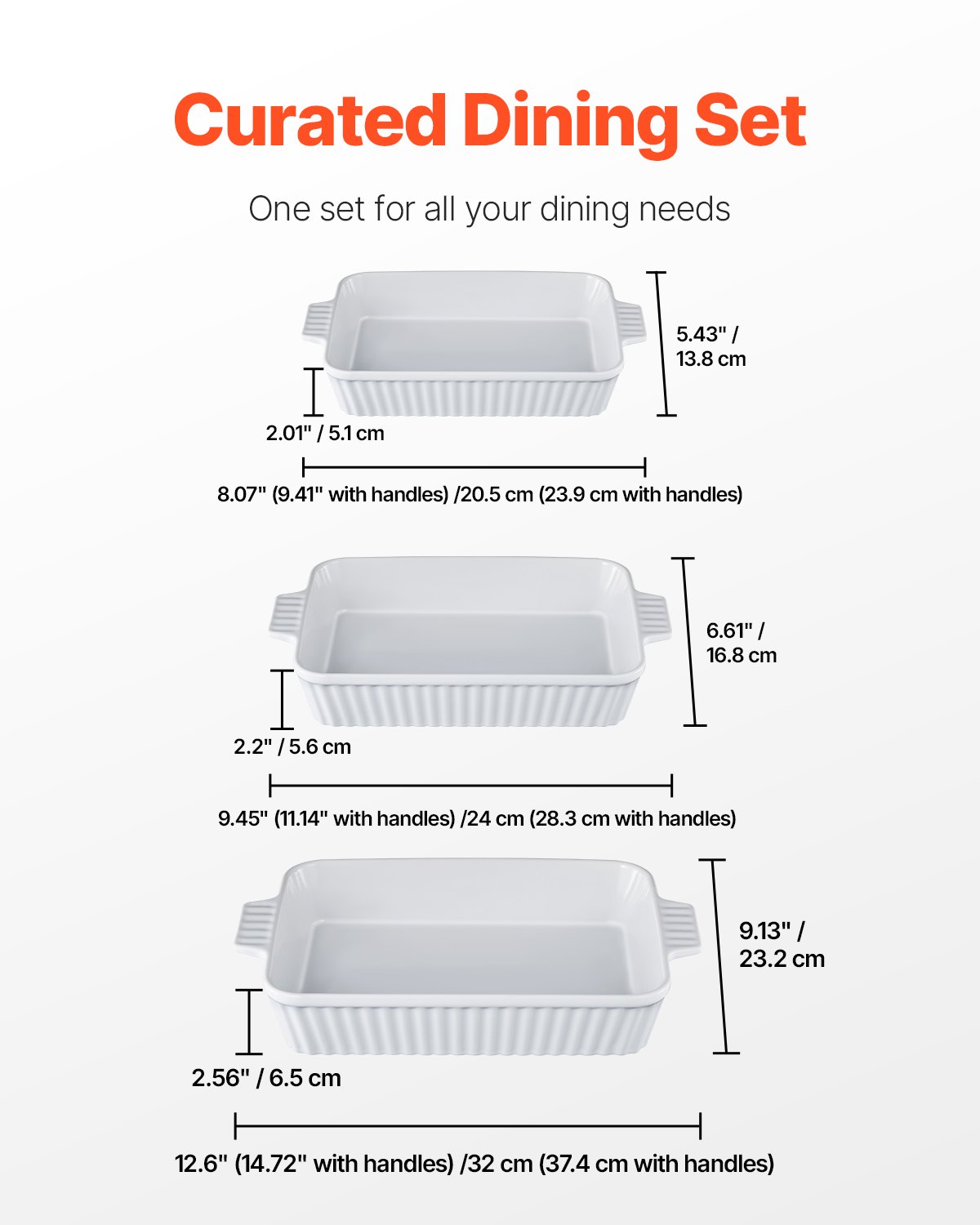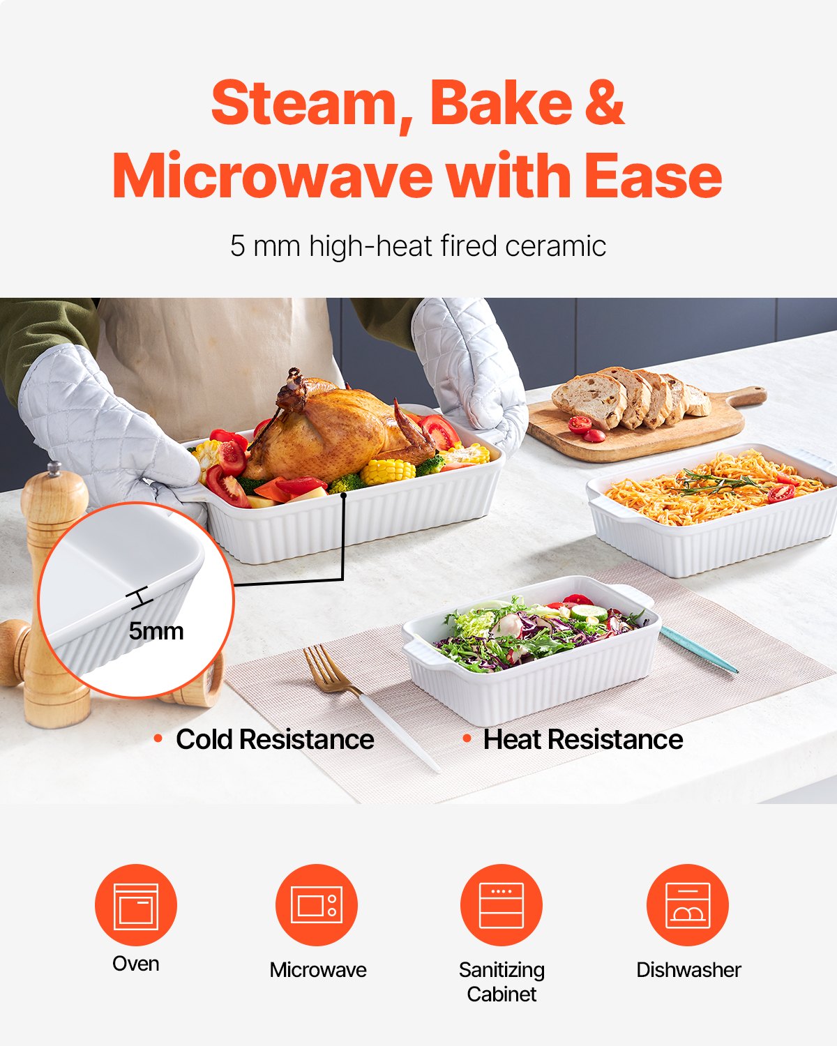 Ευέλικτο ταψί: Το σετ μας με βαθιά κεραμική κατσαρόλα προσφέρει πολλαπλά μεγέθη και χωρητικότητες, παρέχοντας πρόσθετη αντοχή και περισσότερες επιλογές για κάθε γεύμα. Είναι το καλύτερο για κατσαρόλες, ζυμαρικά φούρνου και ψητές πατάτες. Είναι επίσης εξαιρετικό για την αποθήκευση ζεστών, κρύων ή κατεψυγμένων τροφίμων.