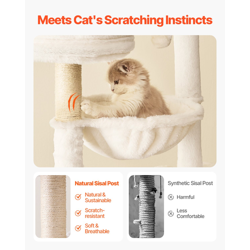 Αναρρίχηση, Ξύσιμο, Παίξτε: Η γάτα σας θα λατρέψει τους φυσικούς στύλους σιζάλ σε αυτόν τον πύργο γάτας, ιδανικοί για αναρρίχηση, ξύσιμο και διατήρηση των νυχιών σε κορυφαία φόρμα. Με πολλά επίπεδα για άλματα και μια άνετη αιώρα για ξεκούραση, ο πύργος γάτας μας είναι ιδανικός για ενεργές γάτες να εξερευνούν και να διασκεδάζουν για ώρες!