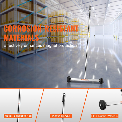 Ελαφρύ και φορητό: Το κυλιόμενο μαγνητικό σάρωθρο 17 ιντσών διαθέτει ρυθμιζόμενη τηλεσκοπική λαβή από 17,52 έως 40,94 ίντσες (445-1040 mm) και ζυγίζει μόνο 12,37 λίβρες. Εξοικονομεί χώρο και είναι ιδανικό για στενούς χώρους, ιδανικό για τη συλλογή καρφιών ή μικρών μεταλλικών εξαρτημάτων σε σπίτια, μικρούς χώρους ή αυλές.