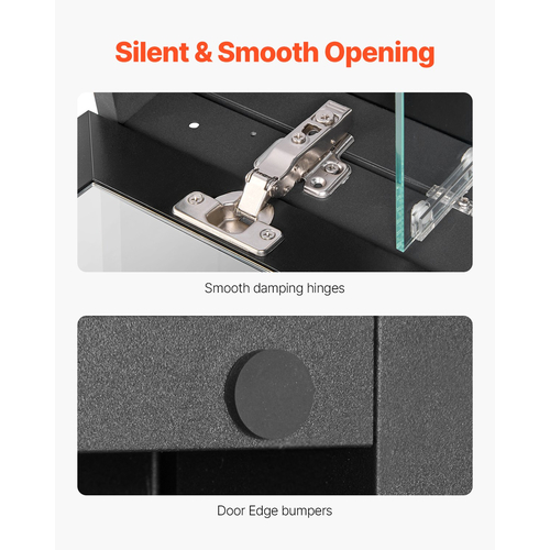 Πρόσθετα Premium Χαρακτηριστικά: Εξοπλισμένο με υψηλής ποιότητας μεντεσέδες απόσβεσης χαμηλού θορύβου, αυτό το ντουλάπι φαρμάκων με καθρέφτη έχει σχεδιαστεί για ομαλό και αθόρυβο άνοιγμα και κλείσιμο. Η επιφάνεια είναι ανθεκτική στις γρατσουνιές και στη σκουριά, ενώ τα μαξιλάρια απορρόφησης που περιλαμβάνονται μειώνουν περαιτέρω τον θόρυβο, βελτιώνοντας τη συνολική εμπειρία χρήστη.