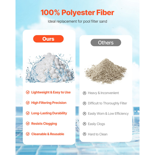 Υλικό Premium: Κατασκευασμένες από 100% πολυεστερικές ίνες, οι μπάλες φίλτρου πισίνας για φίλτρο άμμου παρέχουν υψηλή αντοχή φιλτραρίσματος, γρήγορη ταχύτητα φιλτραρίσματος, μεγάλη διάρκεια ζωής και ελάχιστη φθορά. Ελαφριά και επαναχρησιμοποιήσιμα, αποτελούν την ιδανική αντικατάσταση για τα παραδοσιακά φίλτρα άμμου. Απολαύστε ανώτερη απόδοση φιλτραρίσματος με κάθε χρήση.