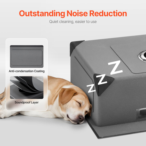 Ηχομόνωση και στρώμα κατά της συμπύκνωσης: Αυτός ο νεροχύτης οικιακού πλυντηρίου πιάτων είναι εξαιρετικά αθόρυβος, εξοπλισμένος με παχύτερα, μαλακότερα ελαστικά μαξιλαράκια απόσβεσης θορύβου. Τα ηχομονωτικά επιθέματα και τα μονωτικά υλικά βάσης μειώνουν τον θόρυβο, εξασφαλίζοντας εξαιρετική μείωση του ήχου και ησυχία, ενώ η παχιά επίστρωση βάσης αποτρέπει τη συμπύκνωση.