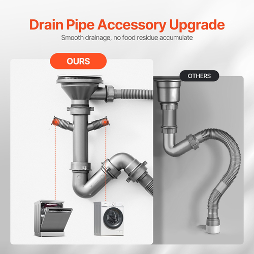 Σύστημα γρήγορης αποστράγγισης: Αυτός ο νεροχύτης ράβδου προετοιμασίας διαθέτει σχέδιο αποστράγγισης σε σχήμα Χ στο κάτω μέρος, εξοπλισμένο με κιτ αποστράγγισης για να εξασφαλίζεται γρήγορη αποστράγγιση και να αποτρέπεται η συσσώρευση νερού. Περιλαμβάνει επίσης ένα πλευρικό άνοιγμα αποστράγγισης και δύο διεπαφές σωλήνων νερού για τη σύνδεση των πλυντηρίων πιάτων, επιτρέποντας την ομαλή αποστράγγιση χωρίς συσσώρευση υπολειμμάτων τροφών.