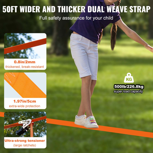 Σχεδιασμός ασφάλειας: Κάθε σετ εξοπλισμού προπόνησης στην πίσω αυλή μπορεί να υποστηρίξει έως και 500 λίβρες, επαρκές για δύο ή περισσότερα παιδιά να χρησιμοποιούν ταυτόχρονα. Οι αναβαθμισμένοι ιμάντες πόρπης, οι εντατήρες και οι φαρδύτεροι, παχύτεροι ιμάντες λύνουν το πρόβλημα της χαλάρωσης των σχοινιών, ασφαλίζοντας με ασφάλεια στα δέντρα για να εξασφαλίσουν ότι τα πόδια των παιδιών δεν αγγίζουν το έδαφος για μια ξέγνοιαστη εμπειρία παιχνιδιού. Οι θερμοπλαστικοί ιμάντες διπλής στρώσης διασφαλίζουν ότι το προϊόν δεν ραγίζει, παρέχοντας μια ασφαλή και επαρκή εμπειρία λαβής για τα παιδιά.