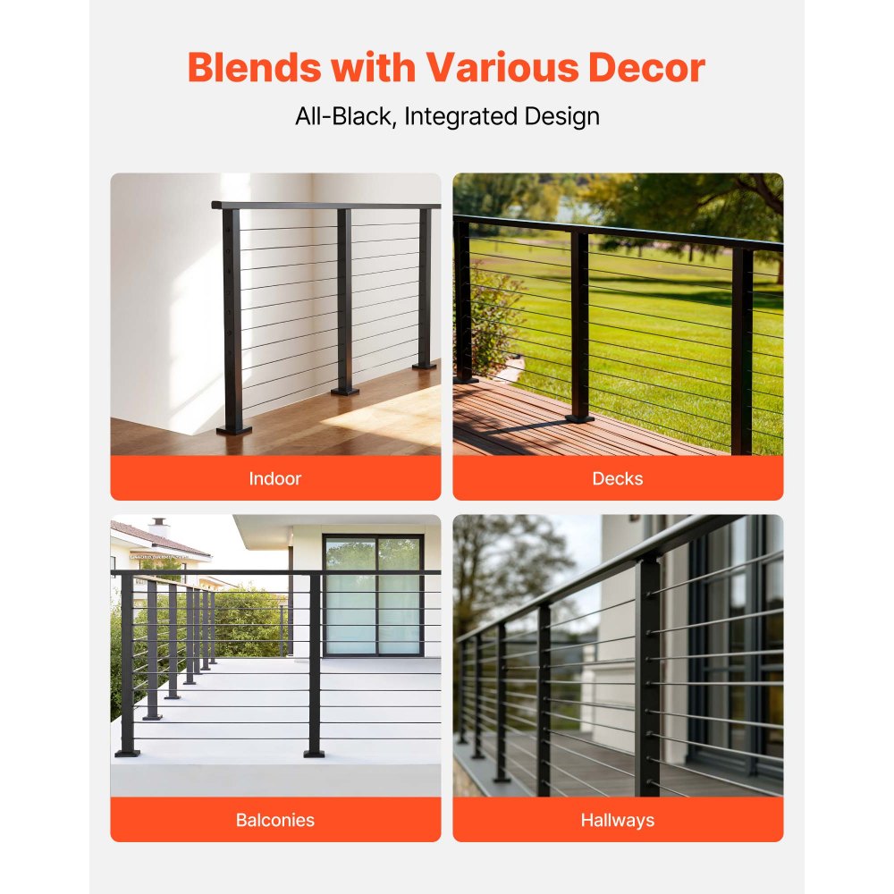 Κιτ κιγκλιδωμάτων: Το πλήρες κιτ κιγκλιδωμάτων μας περιλαμβάνει τετράγωνους σωλήνες, στύλους και καλώδια για προσαρμοσμένα κιγκλιδώματα ασφαλείας. Εύκολο στην εγκατάσταση και ταιριάζει ιδανικά σε εσωτερικές σκάλες, μπαλκόνια ή εξωτερικές βεράντες, καθιστώντας τον χώρο σας πιο ασφαλή και ελκυστικό. Αντοχή στη σκουριά και τη διάβρωση: Κατασκευασμένο από ανοξείδωτο ατσάλι 304 με φινίρισμα με ηλεκτροστατική βαφή πούδρας, αυτό το κιγκλίδωμα προσφέρει εξαιρετική αντοχή στη σκουριά και λείες άκρες. Ο στιβαρός σχεδιασμός του παρέχει αξιόπιστη στήριξη και μακροχρόνια ανθεκτικότητα. Τυπικός σχεδιασμός οπών: Αυτό το κιτ κιγκλιδώματος διαθέτει ύψος στύλου 35 ιντσών και απόσταση καλωδίων 3,19 ιντσών, πληρώντας τα πρότυπα ασφαλείας σφαίρας 4 ιντσών. Το άνοιγμα των στύλων ελέγχεται εντός 4 ποδιών, αποφεύγοντας αποτελεσματικά την αναρρίχηση και τις πτώσεις αντικειμένων για ασφάλεια. Προσαρμόσιμος σχεδιασμός: Ο σχεδιασμός με δυνατότητα κοπής σάς επιτρέπει να προσαρμόζετε το μήκος ανάλογα με τον χώρο σας. Εύκολη τροποποίηση και εγκατάσταση, διασφαλίζοντας ότι το κιγκλίδωμα ταιριάζει ιδανικά στον οικιακό ή επαγγελματικό σας χώρο, βελτιώνοντας την άνεση και την ευελιξία. Σταθερή Στήριξη: Ο σχεδιασμός του φαρδιού κιγκλιδώματος παρέχει άνετο κράτημα και σταθερή στήριξη. Τα ανθεκτικά στις γρατσουνιές καπάκια στις άκρες εξασφαλίζουν ασφάλεια, ενώ ο σχεδιασμός χωρίς συγκολλήσεις βελτιώνει την αισθητική και την ανθεκτικότητα, προσφέροντας αξιόπιστη στήριξη για σκάλες και καταστρώματα.
