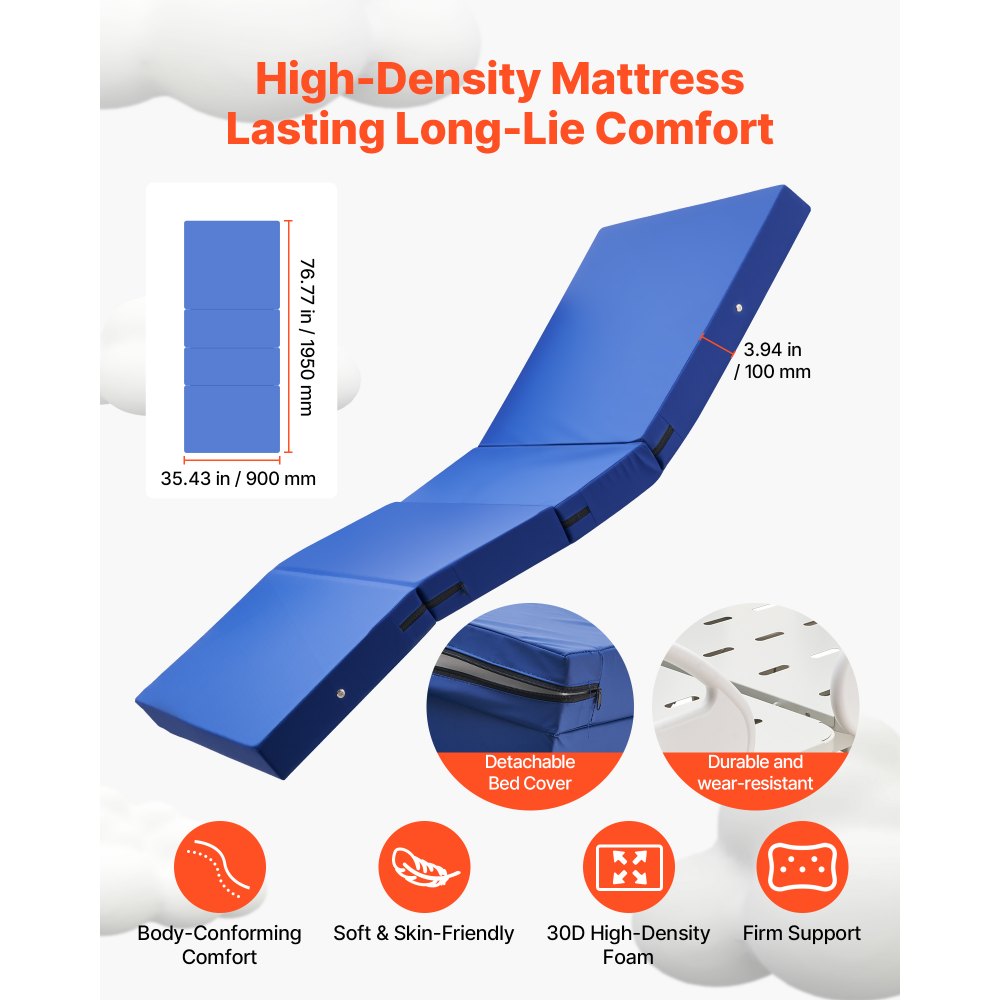 Ηλεκτρική ρύθμιση 5 λειτουργιών: Το πλήρως ηλεκτρικό νοσοκομειακό κρεβάτι VEVOR υποστηρίζει ρύθμιση πλάτης 0–75°, ρύθμιση ποδιών 0–45°, ρυθμιζόμενο ύψος από 470 mm έως 760 mm, καθώς και ρύθμιση Trendelenburg και αντίστροφη ρύθμιση Trendelenburg για πιο ευέλικτη και άνετη φροντίδα. Ανώτερο Μηχανοκίνητο Σύστημα: Το πλήρως ηλεκτρικό νοσοκομειακό κρεβάτι 5 λειτουργιών μας χρησιμοποιεί έναν υψηλής ποιότητας ενεργοποιητή κινητήρα και σύστημα ελέγχου για ομαλές και αθόρυβες ρυθμίσεις. Με το χειριστήριο χειρός, οι ασθενείς ή οι φροντιστές μπορούν εύκολα να προσαρμόσουν τις θέσεις με ένα κουμπί. Ένα πεντάλ για πλήρες κλείδωμα κρεβατιού: Διαθέτει αναβαθμισμένο σύστημα κεντρικού κλειδώματος με τροχούς 5" και ενσωματωμένα πεντάλ φρένων. Πιέστε τον κόκκινο μοχλό προς τα κάτω για να ασφαλίσετε όλους τους τροχούς για σταθερή τοποθέτηση ή πιέστε τον πράσινο μοχλό προς τα κάτω για να ξεκλειδώσετε για ομαλή κίνηση. Στρώμα υψηλής ποιότητας: Διαθέτει στρώμα αφρού υψηλής πυκνότητας 30D 10cm που κατανέμει ομοιόμορφα την πίεση του σώματος για να μειώσει την ενόχληση από μεγάλες περιόδους ξαπλώματος, παρέχοντας εξαιρετική στήριξη και άνεση που προσαρμόζεται στο σώμα (ύψος κιγκλιδώματος προς στρώμα: 270mm) Σταθερό & Ισχυρό Πλαίσιο: Κατασκευασμένο με ανθεκτικό πλαίσιο από ανθρακούχο χάλυβα, αυτό το ηλεκτρικό ιατρικό κρεβάτι υποστηρίζει έως και 250 κιλά. Προσαρμόζεται άψογα σε νοσοκομεία, κέντρα αποκατάστασης και περιβάλλοντα κατ' οίκον φροντίδας, παρέχοντας αξιόπιστη υποστήριξη για καθημερινή χρήση φροντίδας.