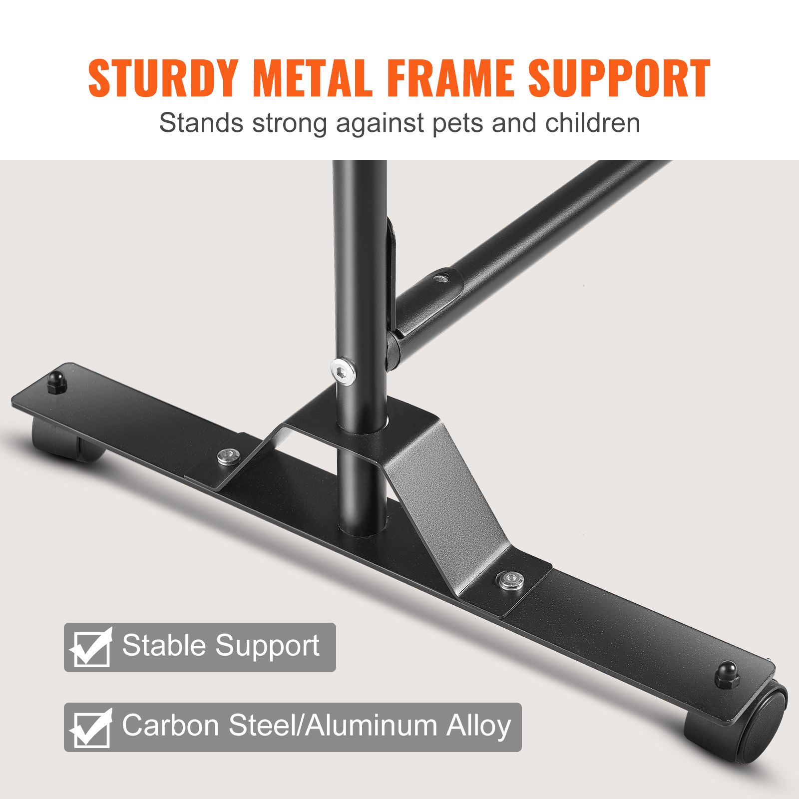 Στιβαρή και αξιόπιστη κατασκευή: Το φορητό διαχωριστικό δωματίων μας συναρμολογείται εύκολα με βίδες και μεταλλικό πλαίσιο από ανθρακούχο χάλυβα. Οι δύο επάνω και κάτω οριζόντιες ράβδοι ενισχύουν το στήριγμα, για να εξασφαλίσουν τη σταθερότητά του. Αυτό κάνει το διαχωριστικό μας στιβαρό και δεν χτυπιέται εύκολα από τα κατοικίδια ή τα παιδιά.