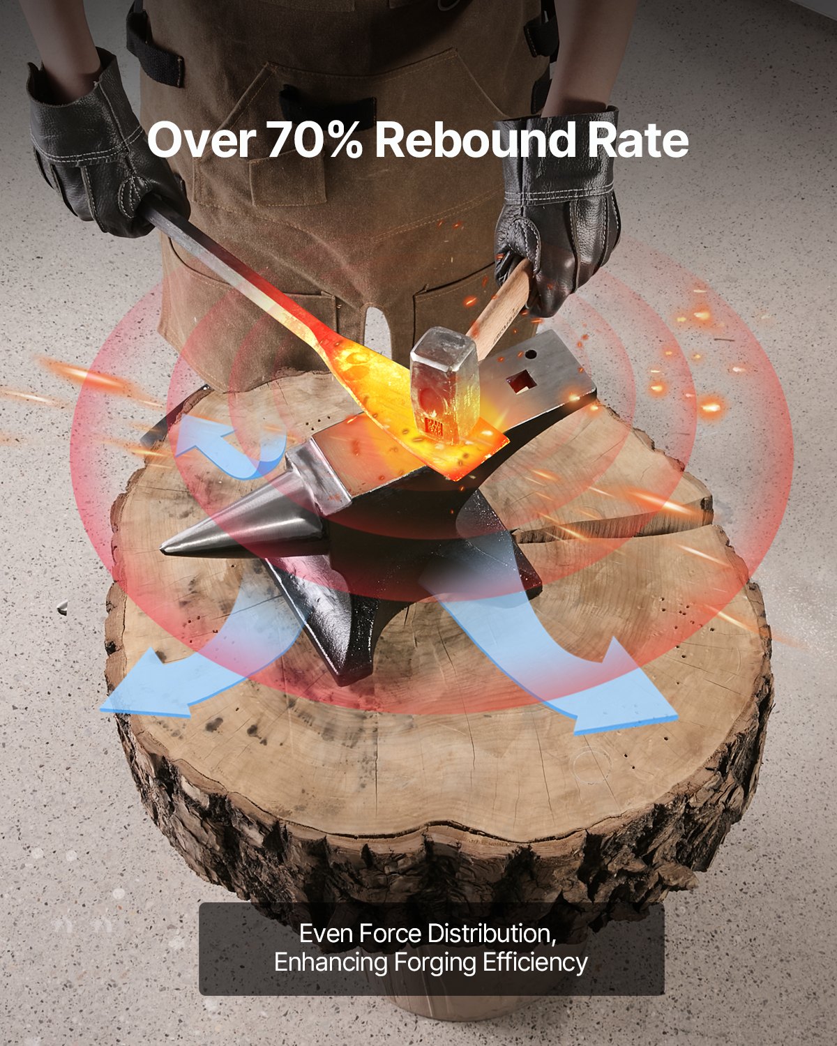 Αποτελεσματική σφυρηλάτηση: Το χυτό αμόνι από χάλυβα διαθέτει ρυθμό ανάκαμψης μεγαλύτερο από 70%, διασφαλίζοντας ομοιόμορφη παραμόρφωση της επιφάνειας σφυρηλάτησης. Μετά από κάθε χτύπημα, το μεταλλικό υλικό επιστρέφει γρήγορα στο αρχικό του σχήμα, βοηθώντας στην ελαχιστοποίηση της ανάγκης για επαναλαμβανόμενη επεξεργασία και βελτιώνοντας την απόδοση σφυρηλάτησης.
