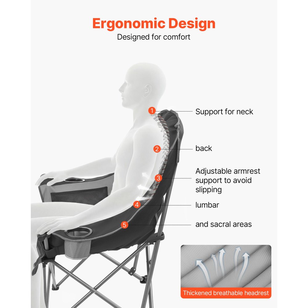 Ύφασμα 600D Rip-stop: Κατασκευασμένη από ύφασμα πολυεστέρα 600D rip-stop με επίστρωση PVC, αυτή η καρέκλα κάμπινγκ διαθέτει ενισχυμένο πλαίσιο από χαλύβδινο σωλήνα για μακροχρόνια χρήση. Η πλάτη περιλαμβάνει βαμβακερή επένδυση πάχους 85 mm / 3,35 in, ιδανική για κάμπινγκ, ψάρεμα και μπάρμπεκιου. Βαρύ φορτίο 450 λιβρών: Κατασκευασμένες για αντοχή, αυτές οι πτυσσόμενες καρέκλες κάμπινγκ υποστηρίζουν έως και 450 λίβρες / 204 κιλά. Το ενισχυμένο ατσάλινο πλαίσιο, οι χοντροί ατσάλινοι σωλήνες και η δομή σε σχήμα Χ εξασφαλίζουν σταθερότητα, αντοχή στη σκουριά και μακροχρόνια ανθεκτικότητα. Άνετα καθίσματα: Αυτή η πτυσσόμενη καρέκλα κάμπινγκ διαθέτει μια συμπαγή πλάτη με βαμβάκι. Το κάθισμα έχει ύψος πλάτης 21,2 ίντσες, βάθος καθίσματος 21,2 ίντσες και πλάτος 18,9 ίντσες. Η ψηλή πλάτη στηρίζει τη μέση και ακολουθεί το φυσικό περίγραμμα του σώματος. Πολυλειτουργικές τσέπες αποθήκευσης: Σχεδιασμένες για ευκολία, αυτές οι πτυσσόμενες καρέκλες κάμπινγκ περιλαμβάνουν διπλές θήκες για ποτήρια και διπλές θήκες για ποτήρια κρασιού και στα δύο μπράτσα. Δύο πλαϊνές τσέπες παρέχουν εύκολη αποθήκευση για ποτά, ποτήρια και προσωπικά αντικείμενα. Ελαφριά και φορητή: Αυτή η καρέκλα κατασκήνωσης είναι ελαφριά και μπορεί να ανυψωθεί εύκολα με το ένα χέρι. Όταν διπλωθεί, είναι φορητή και διαθέτει μία τσάντα μεταφοράς, ιδανική για ατομικές υπαίθριες δραστηριότητες και μικρό χώρο αποθήκευσης στο πορτμπαγκάζ, κάνοντας τη μεταφορά γρήγορη όπου κι αν πάτε.