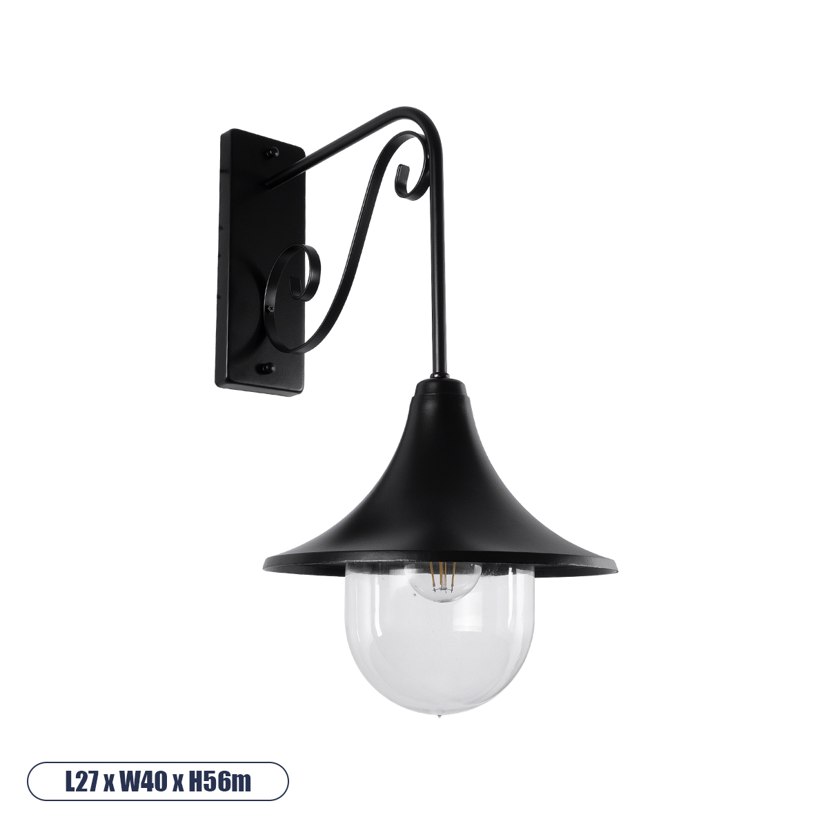 GLOBOSTAR® ANNIEL 01123 Vintage Φωτιστικό Τοίχου - Απλίκα με Ντουί 1 x E27 AC 220-240V IP20 - Μαύρο - Μ27 x Π40 x Υ56cm