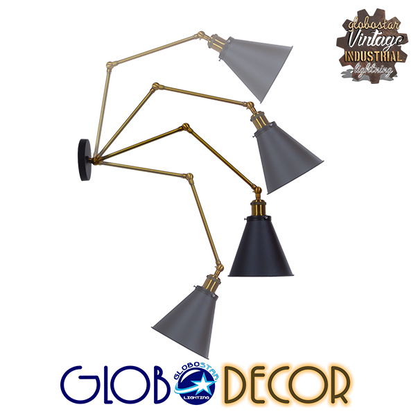 GLOBOSTAR® CRUCE 01037 Vintage Φωτιστικό Τοίχου - Απλίκα με Ντουί 1 x E27 AC 220-240V IP20 - Μαύρο & Χρυσό - Μ19 x Π63 x Υ77cm