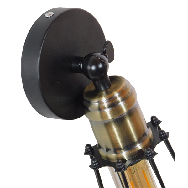GLOBOSTAR® CATEL 01056 Vintage Φωτιστικό Τοίχου - Απλίκα με Ντουί 1 x E27 AC 220-240V IP20 - Μαύρο & Χρυσό - Μ12 x 15 x Υ32cm