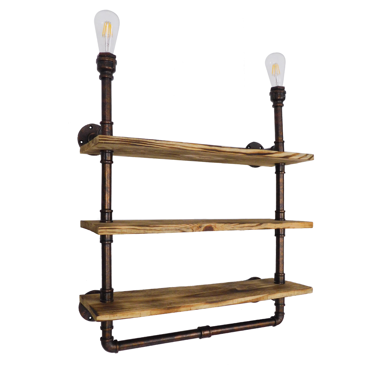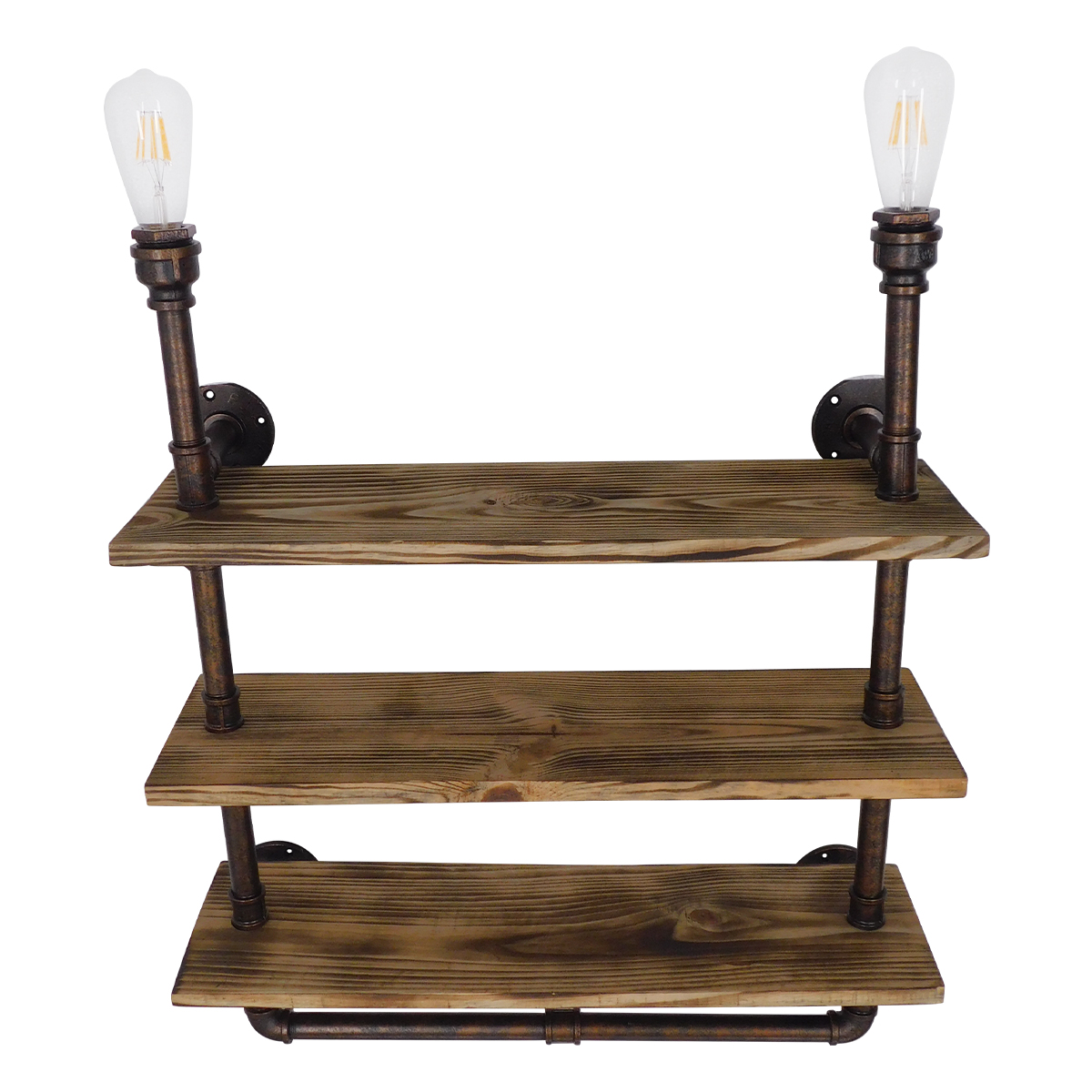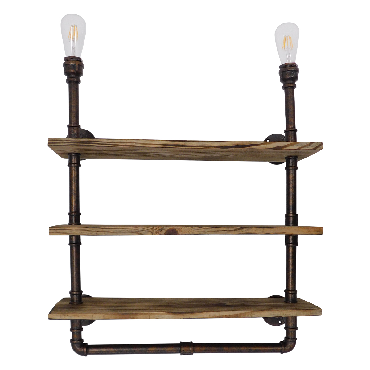 GLOBOSTAR® ENIMAS 01217 Vintage Φωτιστικό Τοίχου - Απλίκα με Ντουί 2 x E27 AC 220-240V IP20 - Χάλκινο & Καφέ - Μ65 x Π23 x Υ76cm