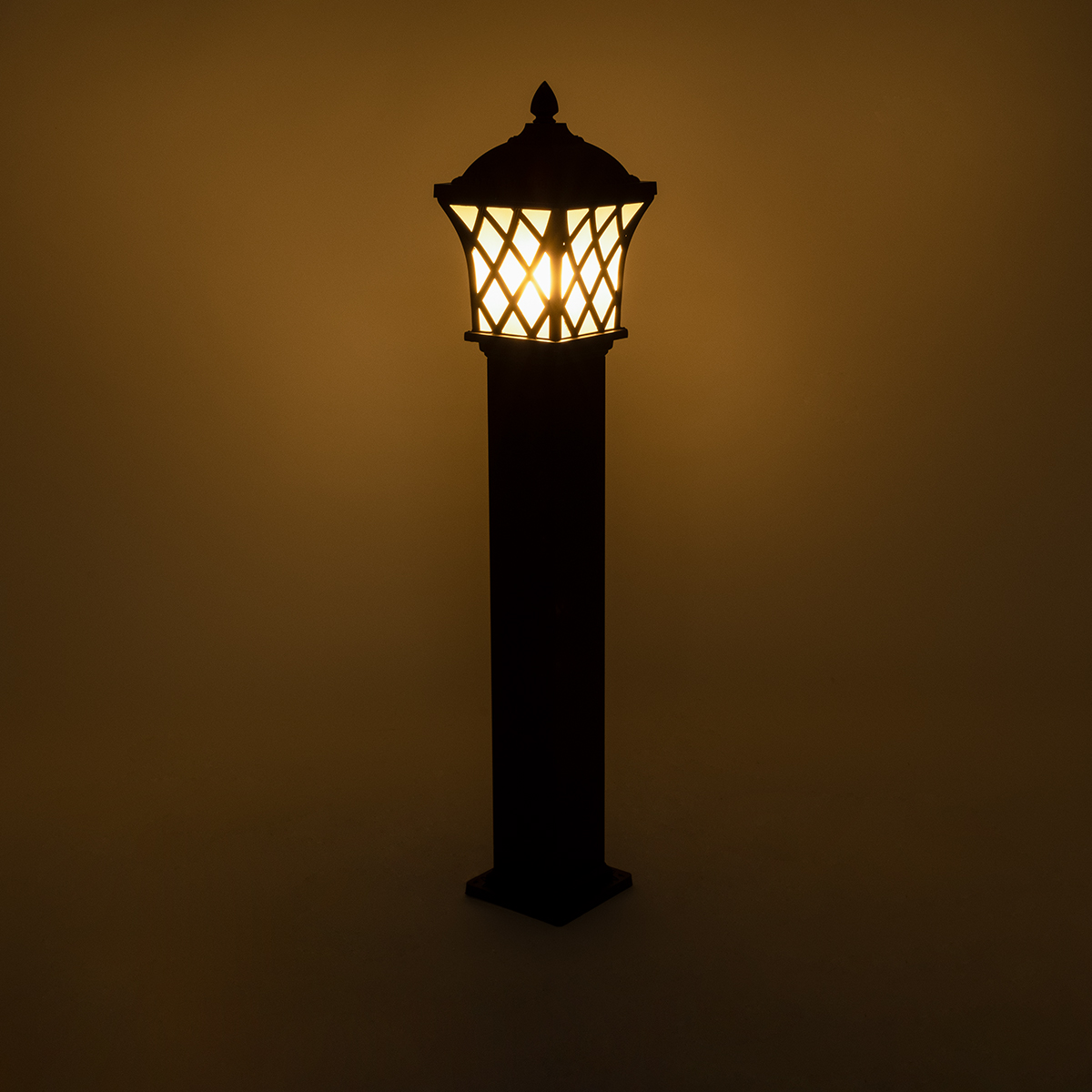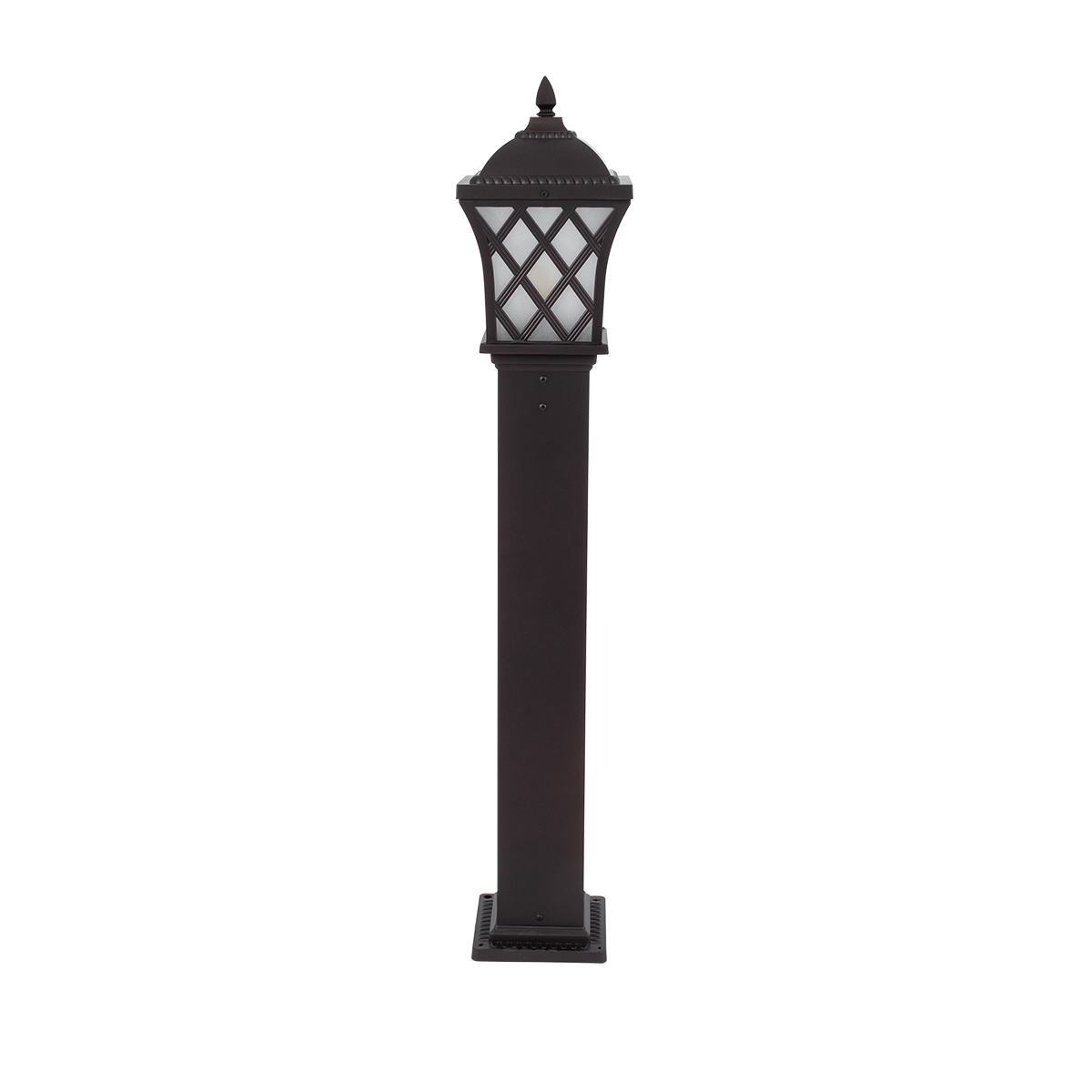 GloboStar® SHELTER 01400 Vintage Φωτιστικό Κολωνάκι Κήπου Μονόφωτο 1 x E27 Καφέ Μεταλλικό Πλέγμα L19 x W19 x H100cm
