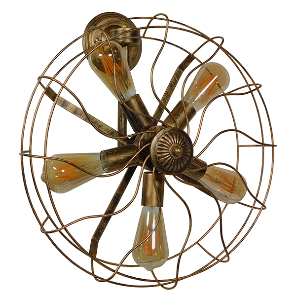 GLOBOSTAR® FAN 01381 Vintage Φωτιστικό Τοίχου - Απλίκα με Ντουί 5 x E27 AC 220-240V IP20 - Μπρούτζινο - Μ46 x Π22 x Υ46cm