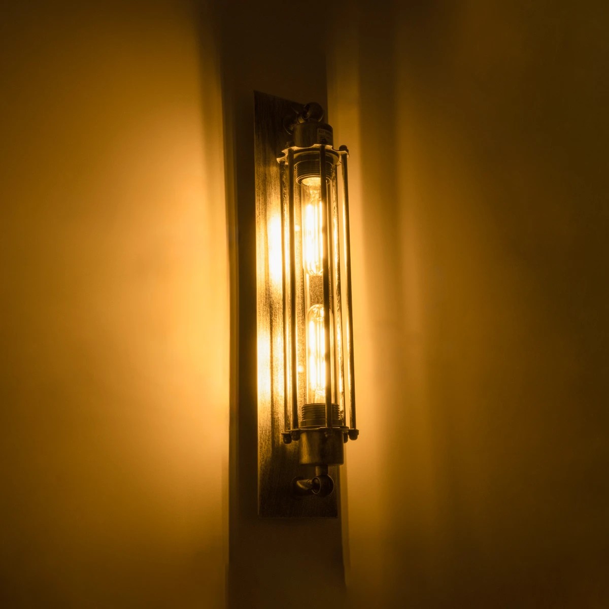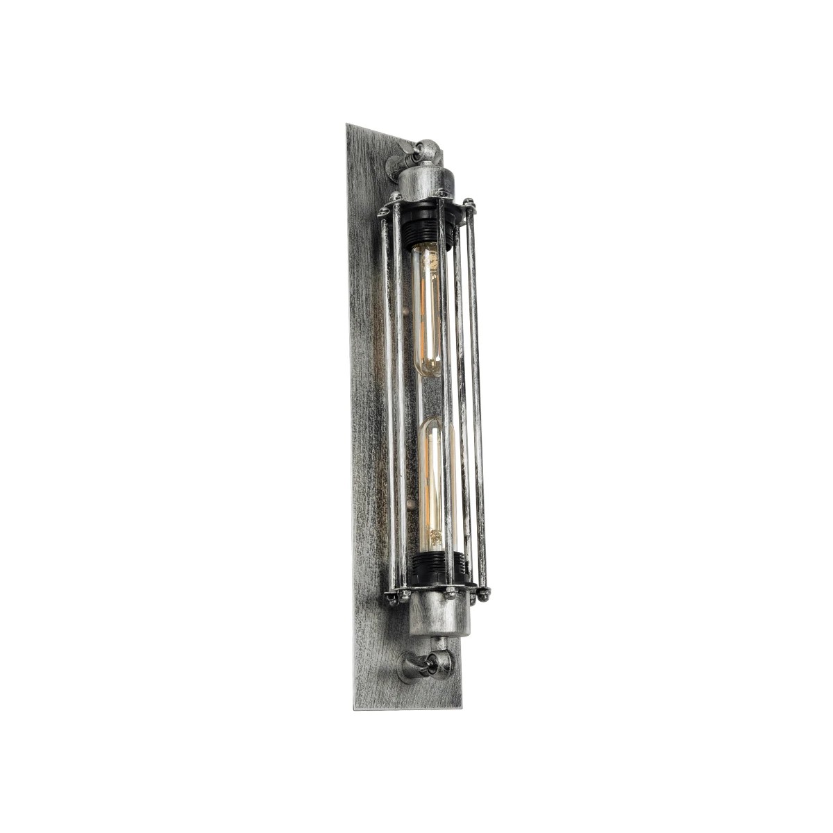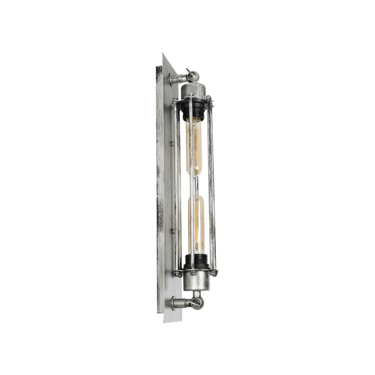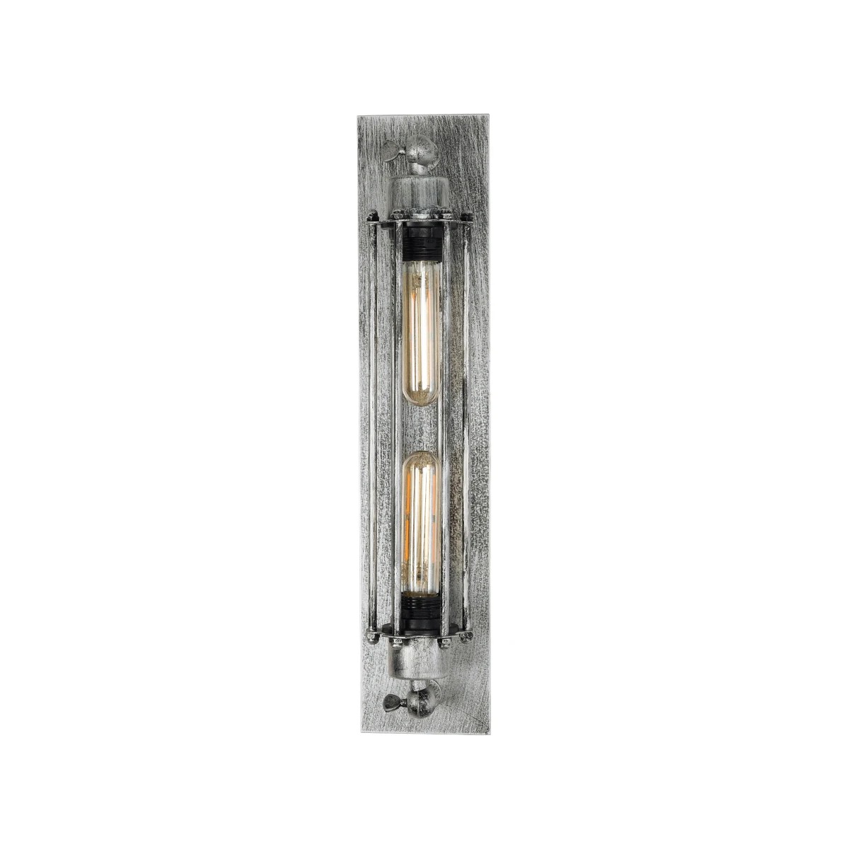 GLOBOSTAR® BESPOKE 01567 Vintage Φωτιστικό Τοίχου - Απλίκα με Ντουί 2 x E27 AC 220-240V IP20 - Ασημί Εφέ Σκουριάς - Μ10 x Π11 x Υ47cm